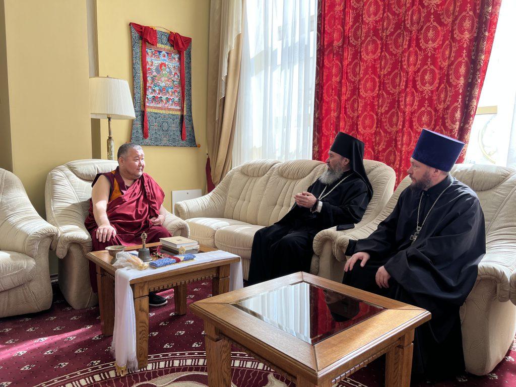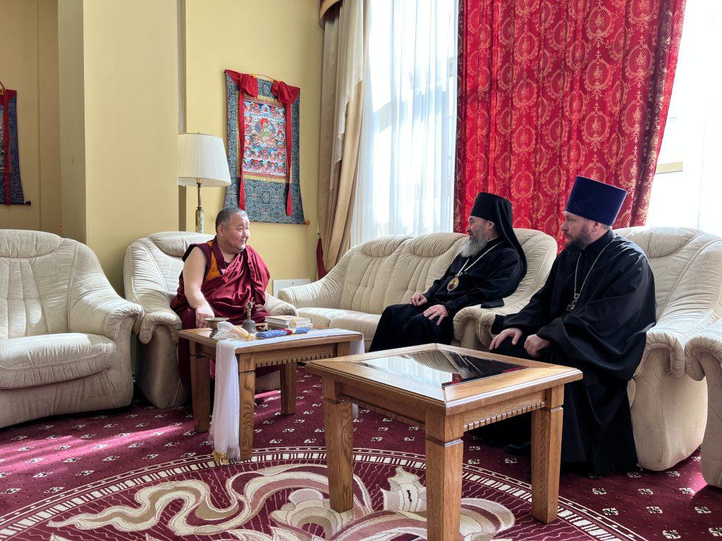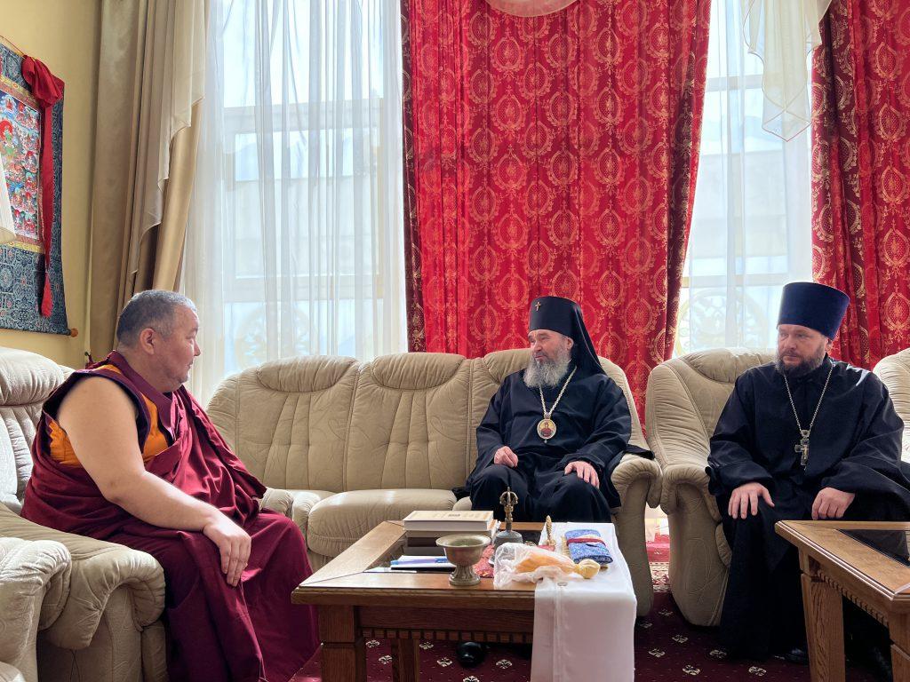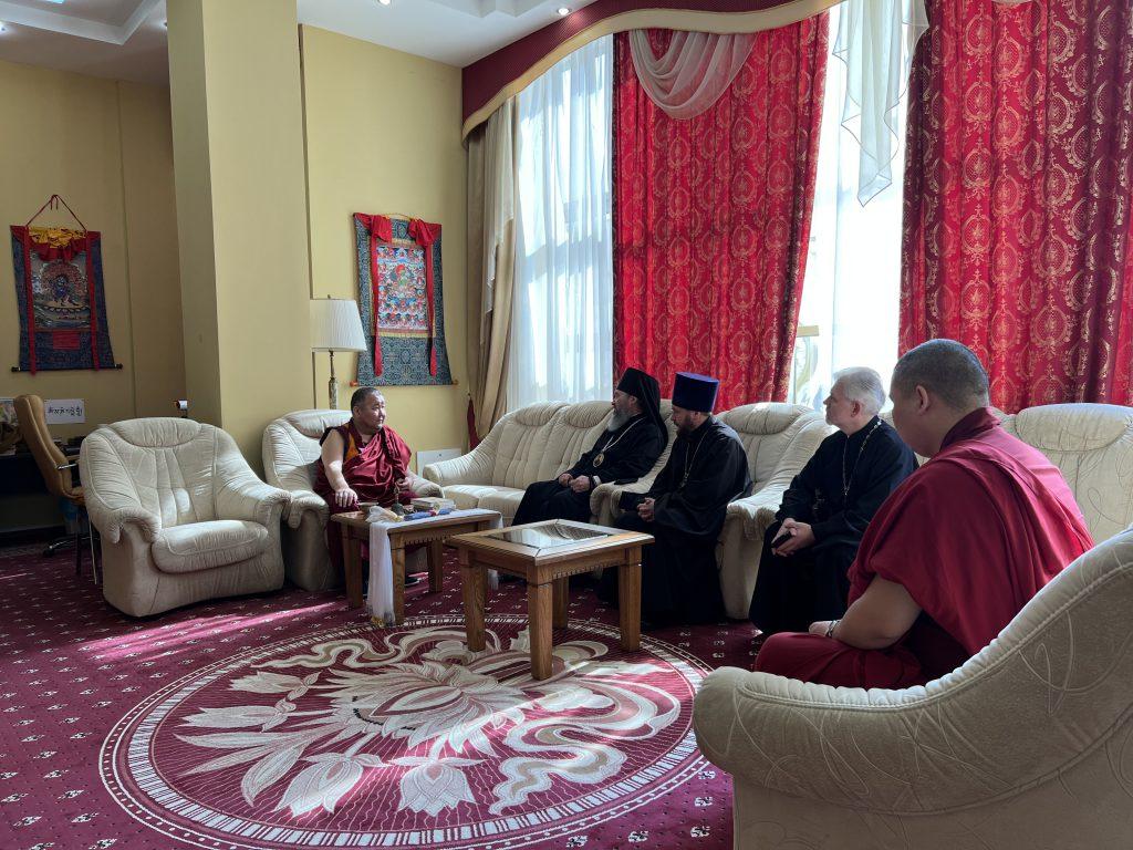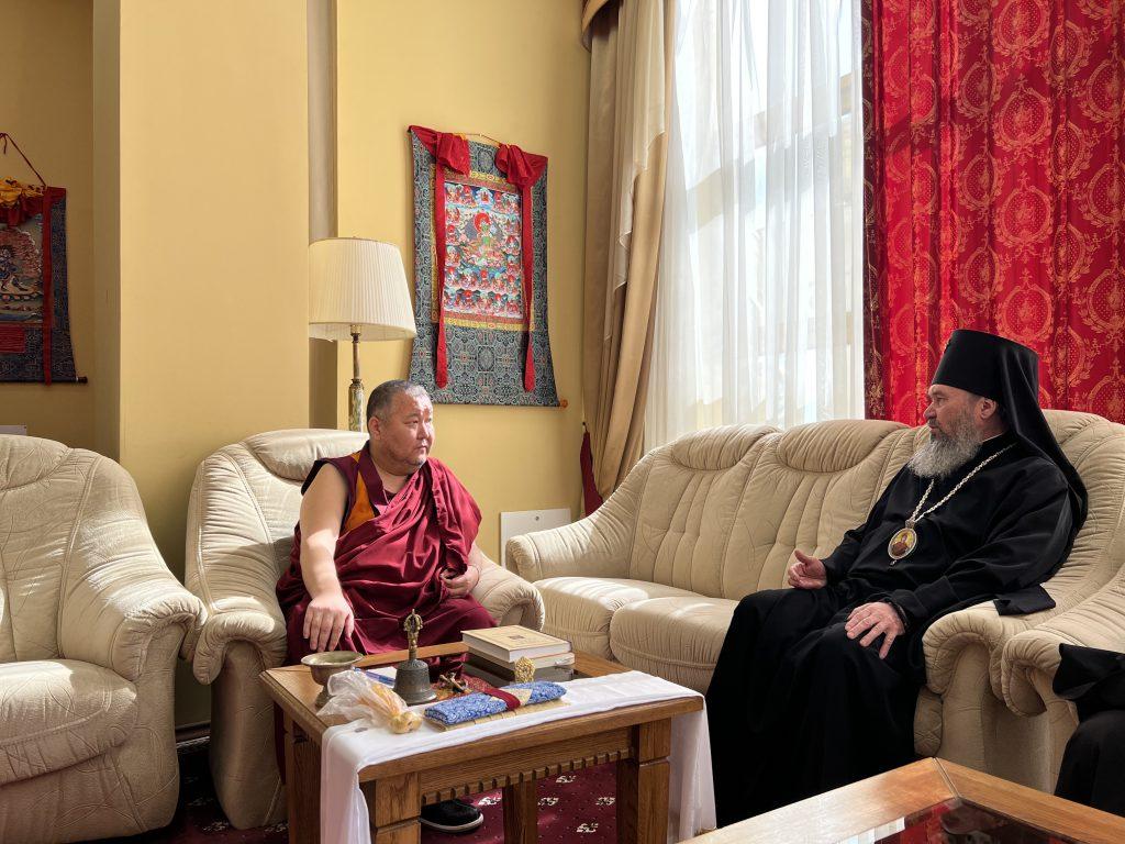 На встрече были обсуждены вопросы межрелигиозного и межнационального мира в степном регионе, также главы православной и буддийской общин затронули актуальные темы общественной жизни.