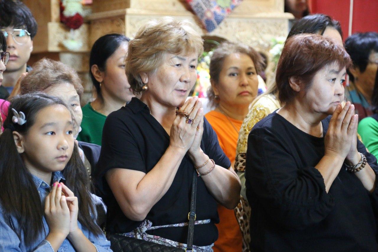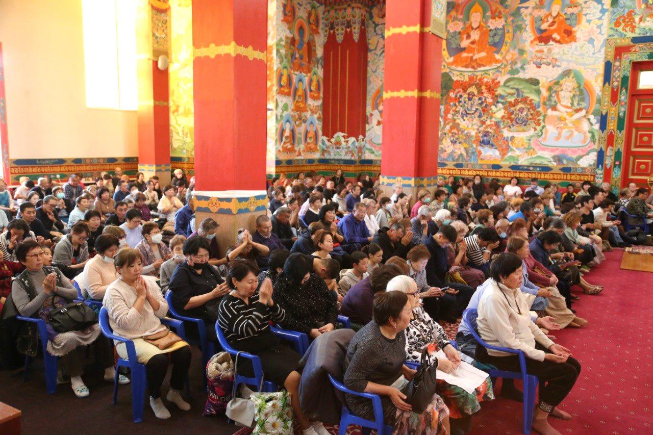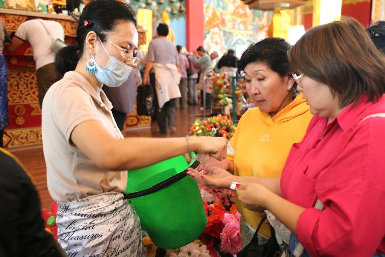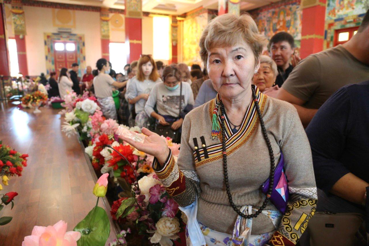 Лицезреть это действо собралось много людей. Дав каждому возможность поклониться еще раз возведенному из песка храму божества, монахи приступили непосредственно к самой церемонии. Вначале была прочитана специальная молитва восхваления Будды Медицины.