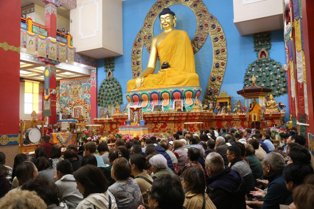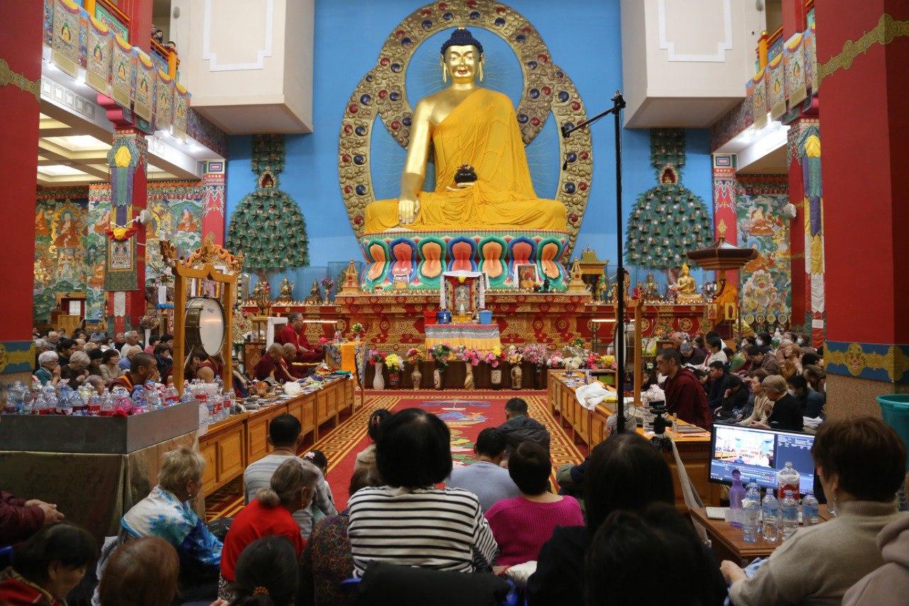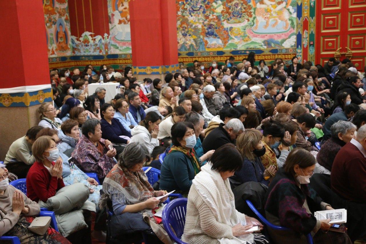 За благополучие и долгую жизнь всех живых существ сегодня молились сотни верующих. В «Золотой обители Будды Шакьямуни» состоялся первый из шести ритуалов продления жизни. Сегодня все молитвы возносили богине долголетия Белой Таре. Было многолюдно, участники ритуала располагались и в дугане, и в конференц-зале, и даже на третем уровне хурула - от мала до велика просили Богиню о самом сокровенном.