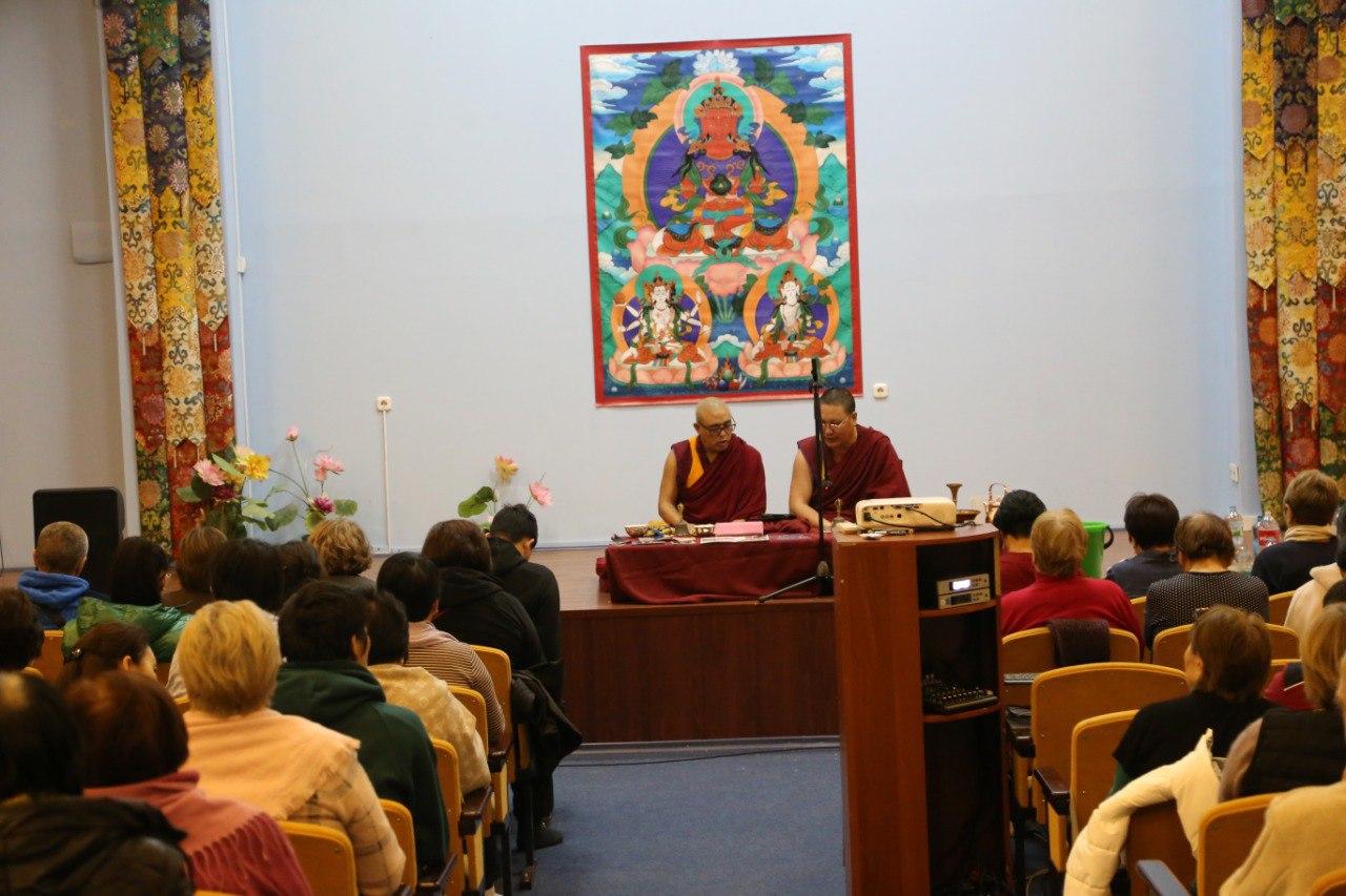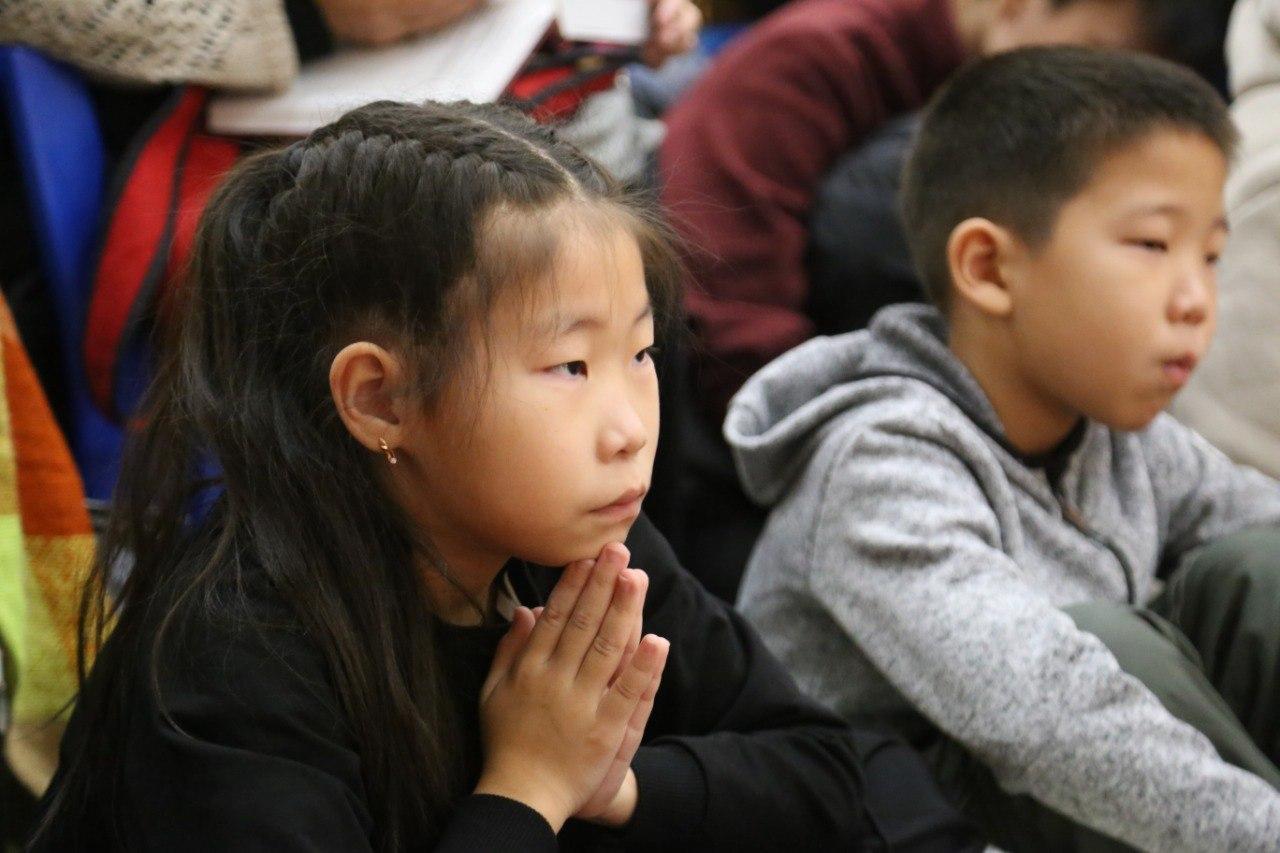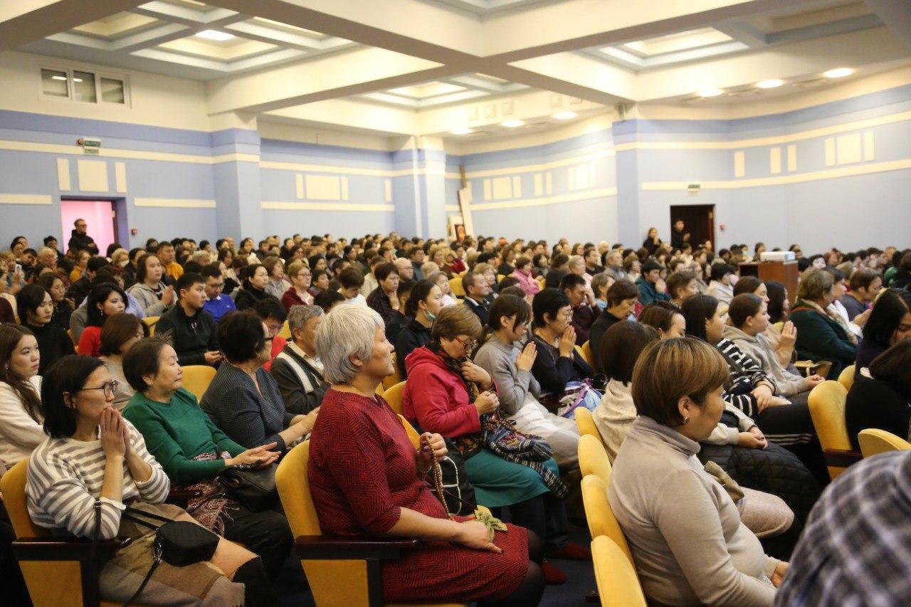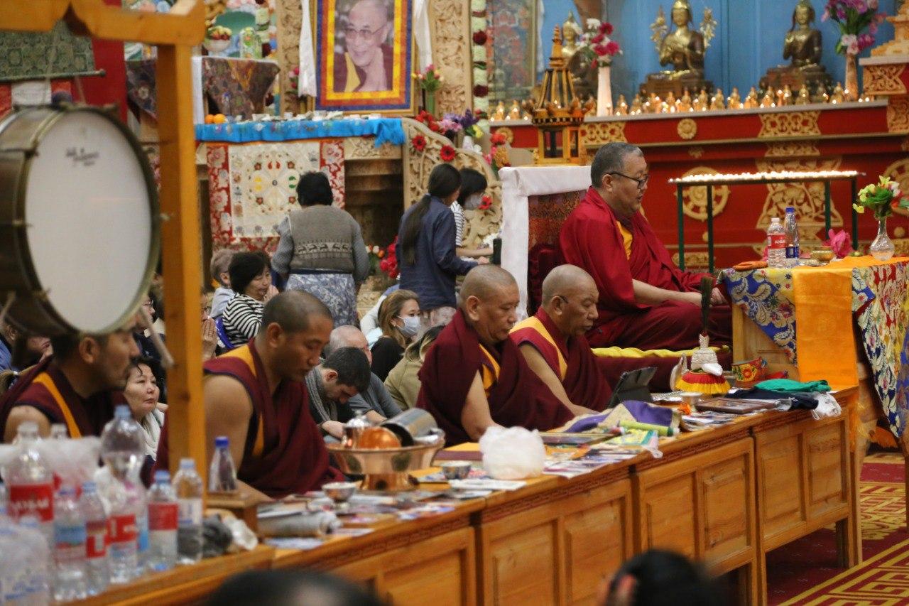 За благополучие и долгую жизнь всех живых существ сегодня молились сотни верующих. В «Золотой обители Будды Шакьямуни» состоялся первый из шести ритуалов продления жизни. Сегодня все молитвы возносили богине долголетия Белой Таре. Было многолюдно, участники ритуала располагались и в дугане, и в конференц-зале, и даже на третем уровне хурула - от мала до велика просили Богиню о самом сокровенном.
