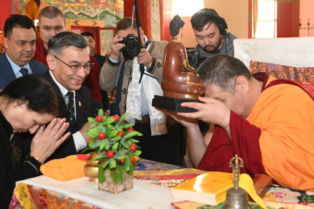 В своём обращении к жителям Калмыкии непальский гость поздравил с наступающей весной, пожелал мира и добра каждому дому, при этом вместе с супругой вознеся молитвы за благо всех живых существ. В дар Центральному хурулу господин Туладхар преподнёс статую Будды Шакьямуни, которую изготовили в Лумбини.