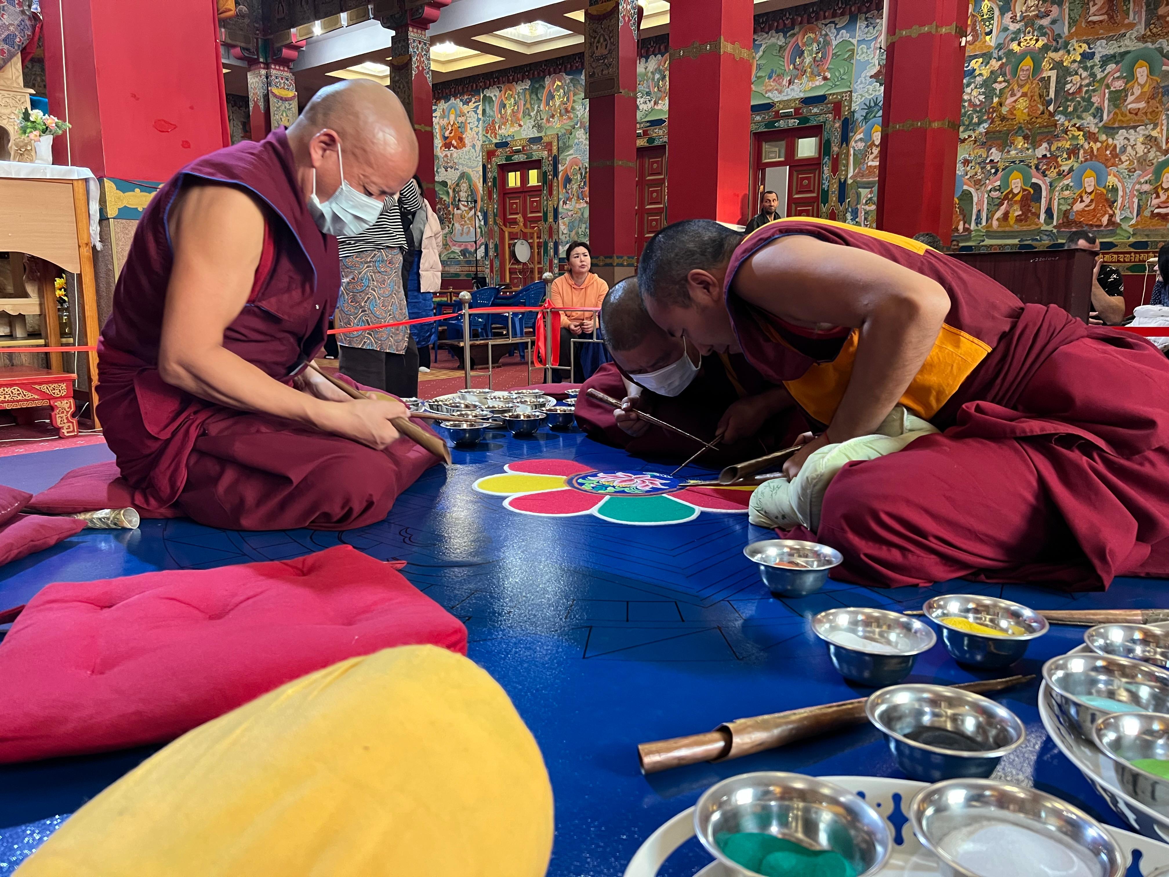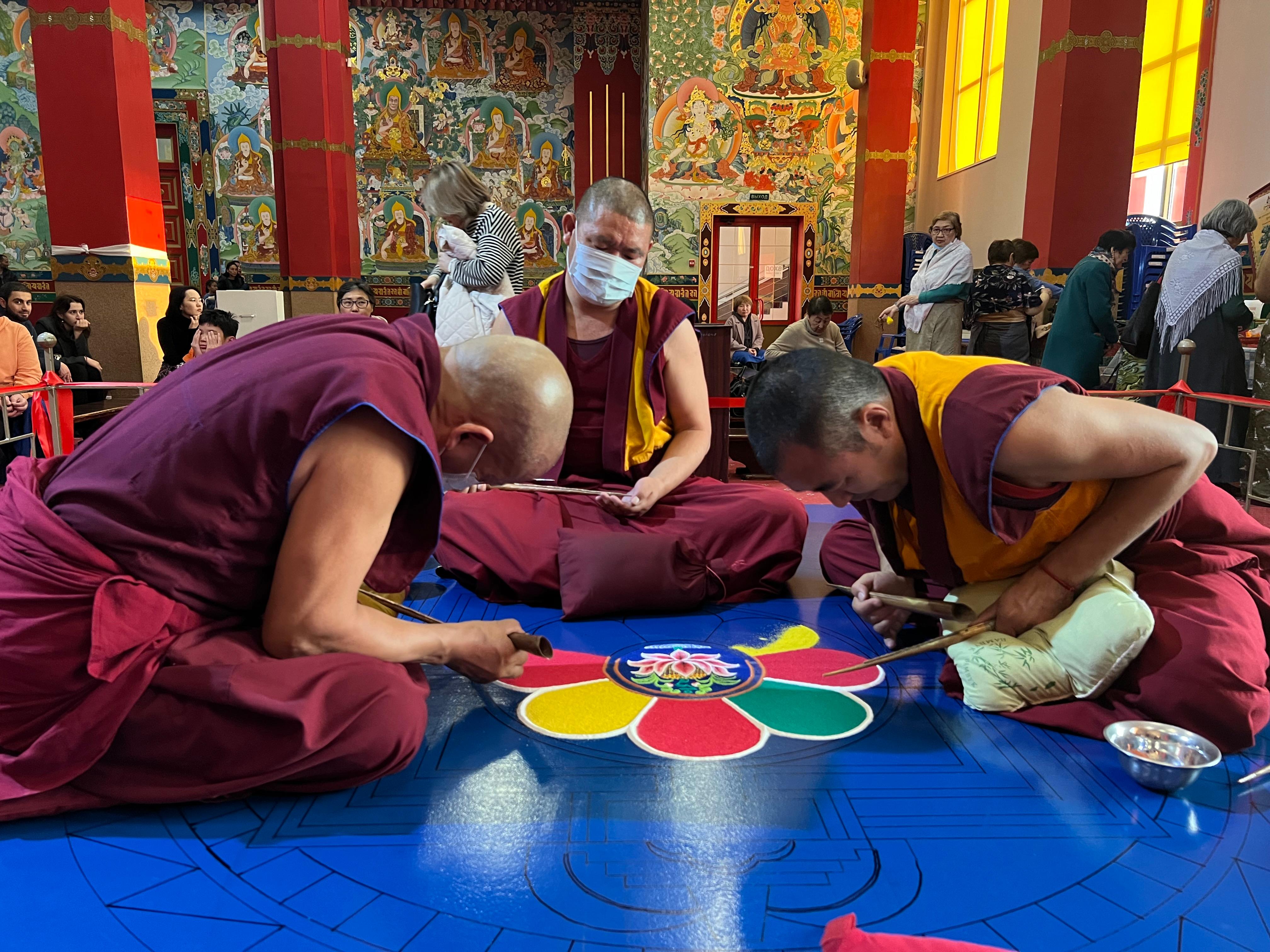Как отметил Шаджин-лама Калмыкии геше Тензин Чойдак, важно, принимая участие в процессе построения песочной мандалы, приходить с искренней мотивацией, с мотивацией добра. «По возможности приходите в эти дни, созерцайте весь процесс, делайте обходы вокруг строящейся мандалы, читайте мантры, это большой буйн для всех, а главное устанавливается тесная связь с самим божеством», - обращаясь к прихожанам, объяснил Шаджин-лама.
