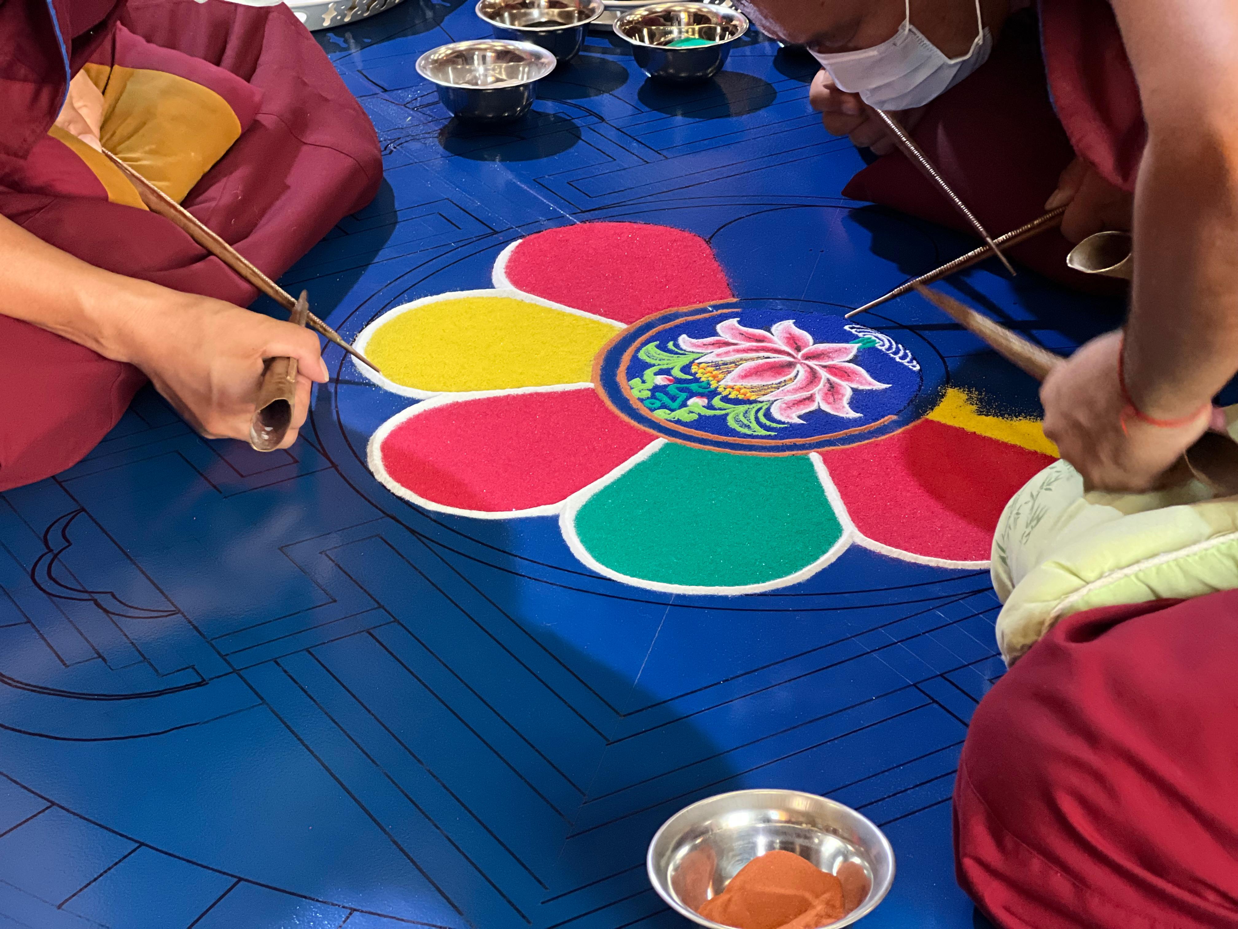 Делегация из Дрепунг Гоманга начала работу по строительству мандалы