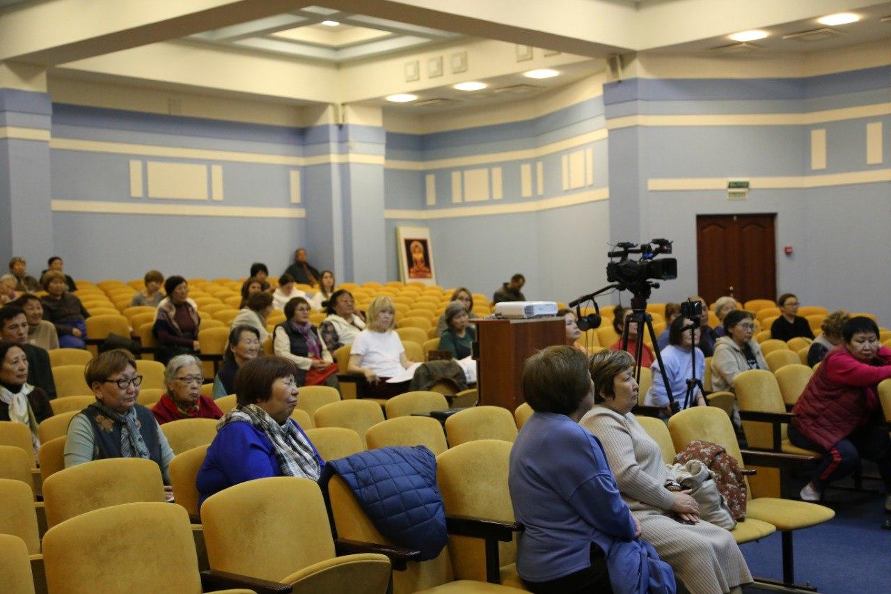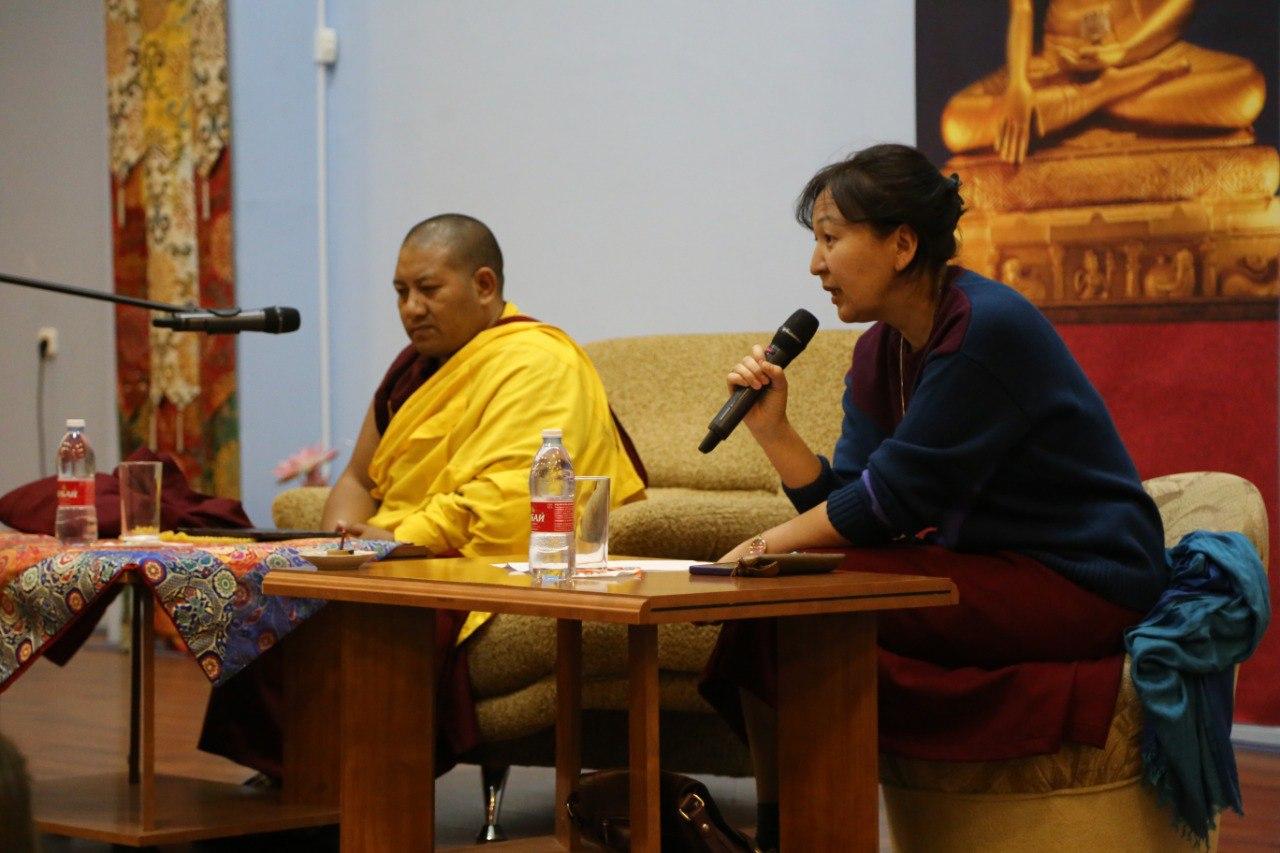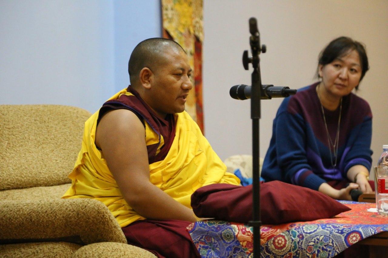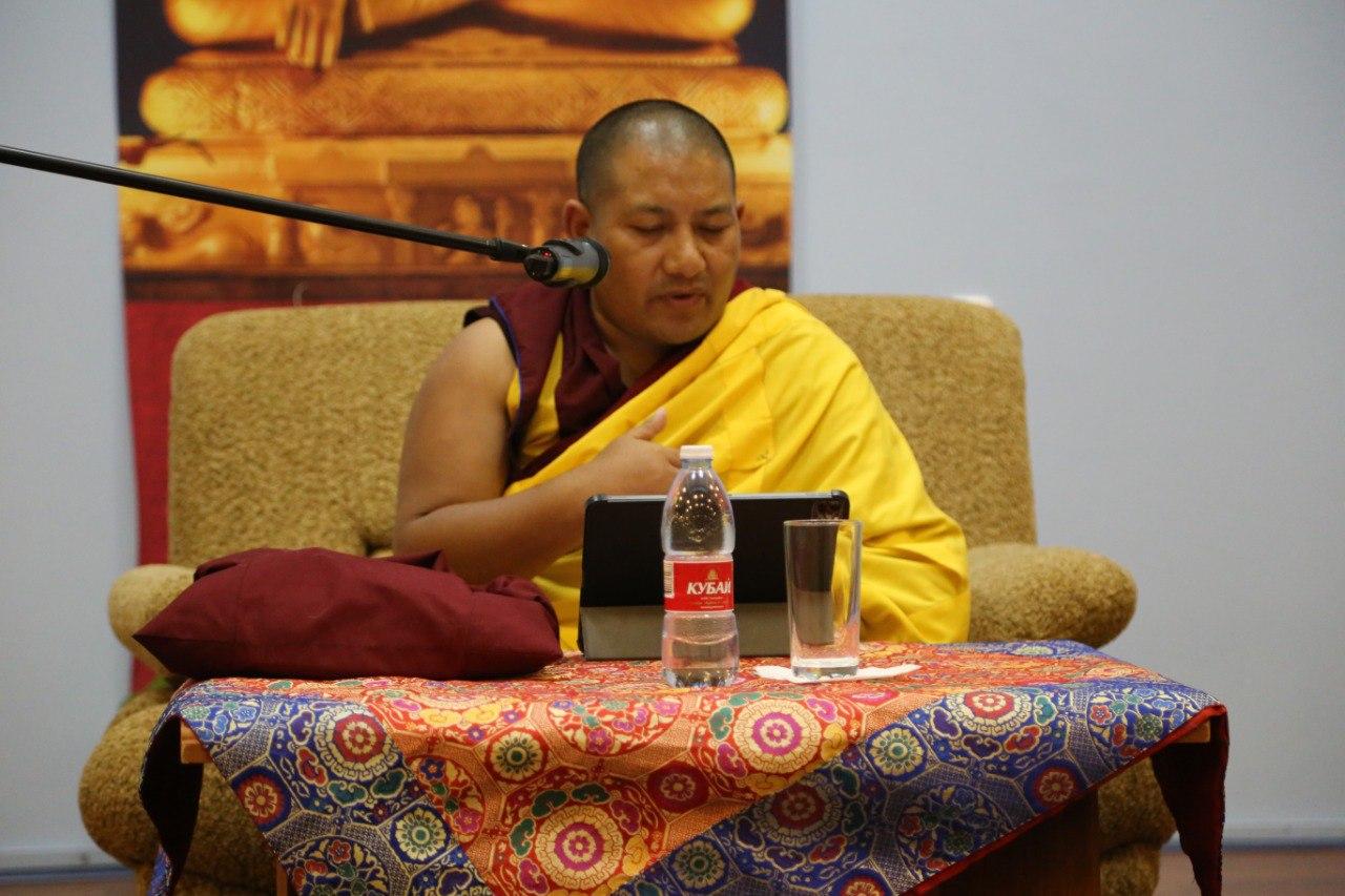 Сегодня третий день лекций. Напомним, что в эти дни, ежедневно, в стенах Центрального хурула Калмыкии досточтимый геше-лхарамба Тензин Сангпо Ринпоче рассказывает о