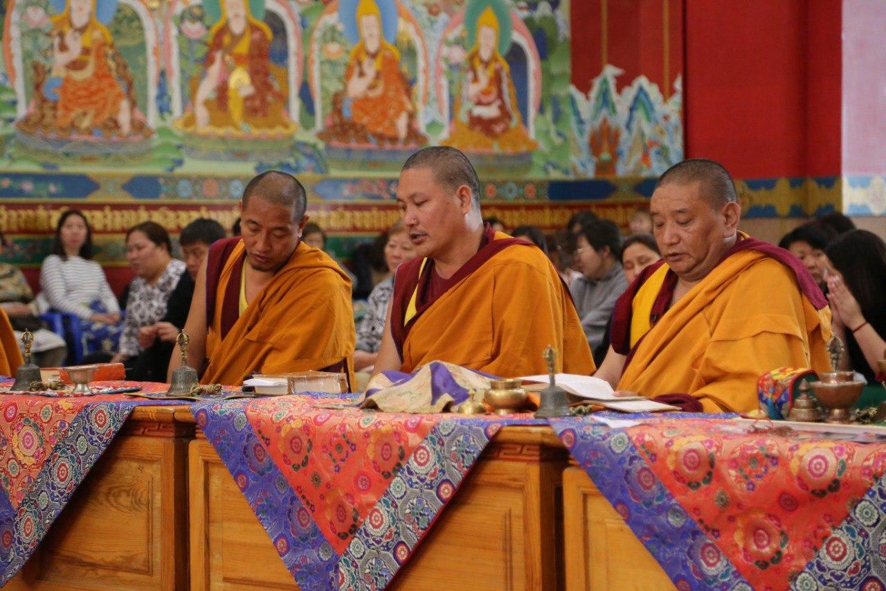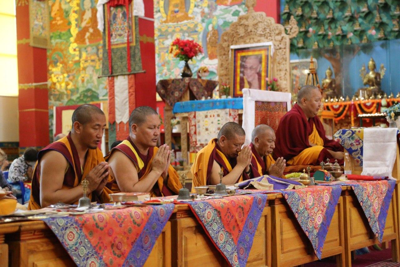 Восхваляющие молитвы Будде Шакьямуни, его деяниям и Учению продолжились сегодня на праздничном молебне.