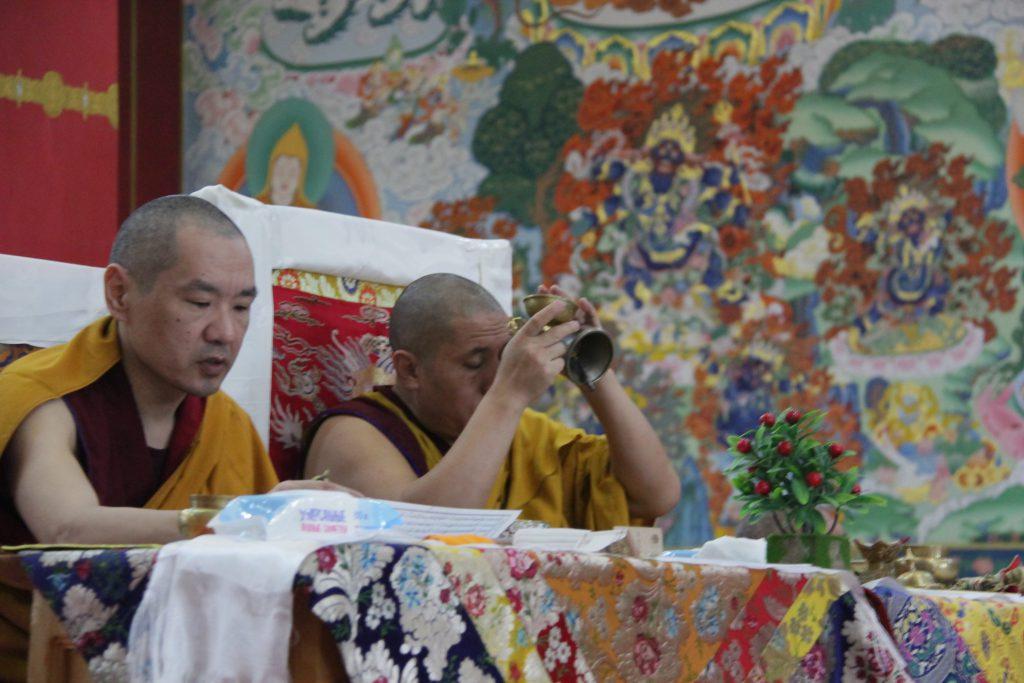 Монахи провели ритуал «Билгин зүркнә үүднәс шулмс хәрүлх йосн» (щернин дудок), и приступили к строительству песочной мандалы Будды Сострадания Авалокитешвары.