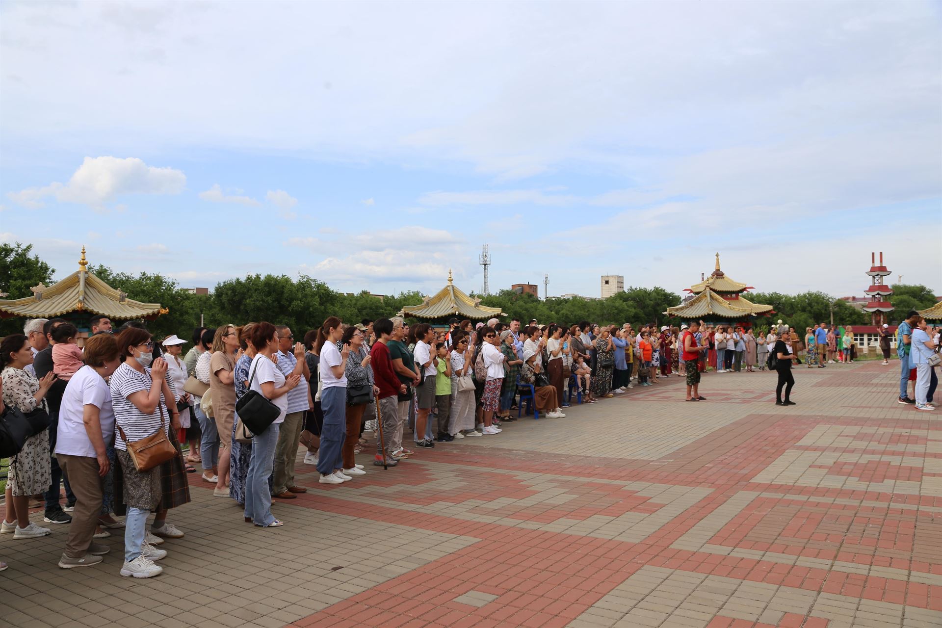 Фоторепортаж с ритуала омовения и освящения большой танки Будды Шакьямуни, которую традиционно вывесили на фасаде Центрального хурула.