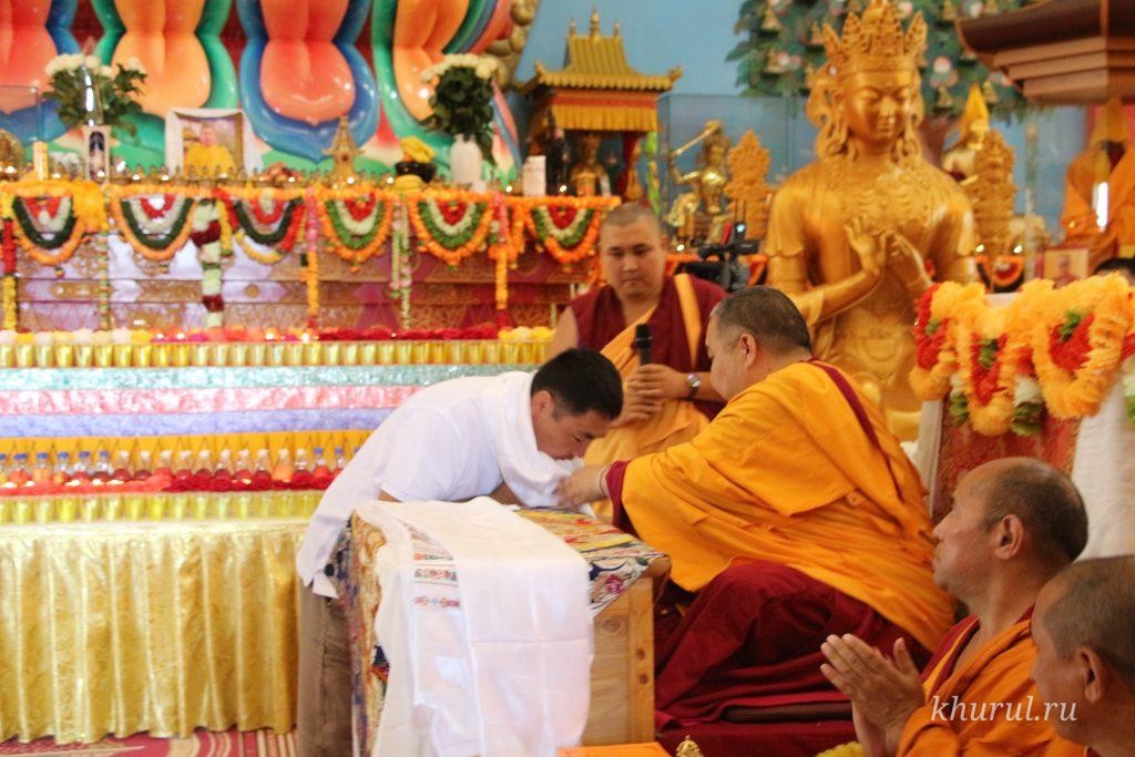 В ходе молебна состоялась торжественная церемония интронизации нового настоятеля Центрального хурула геше Мутула.
