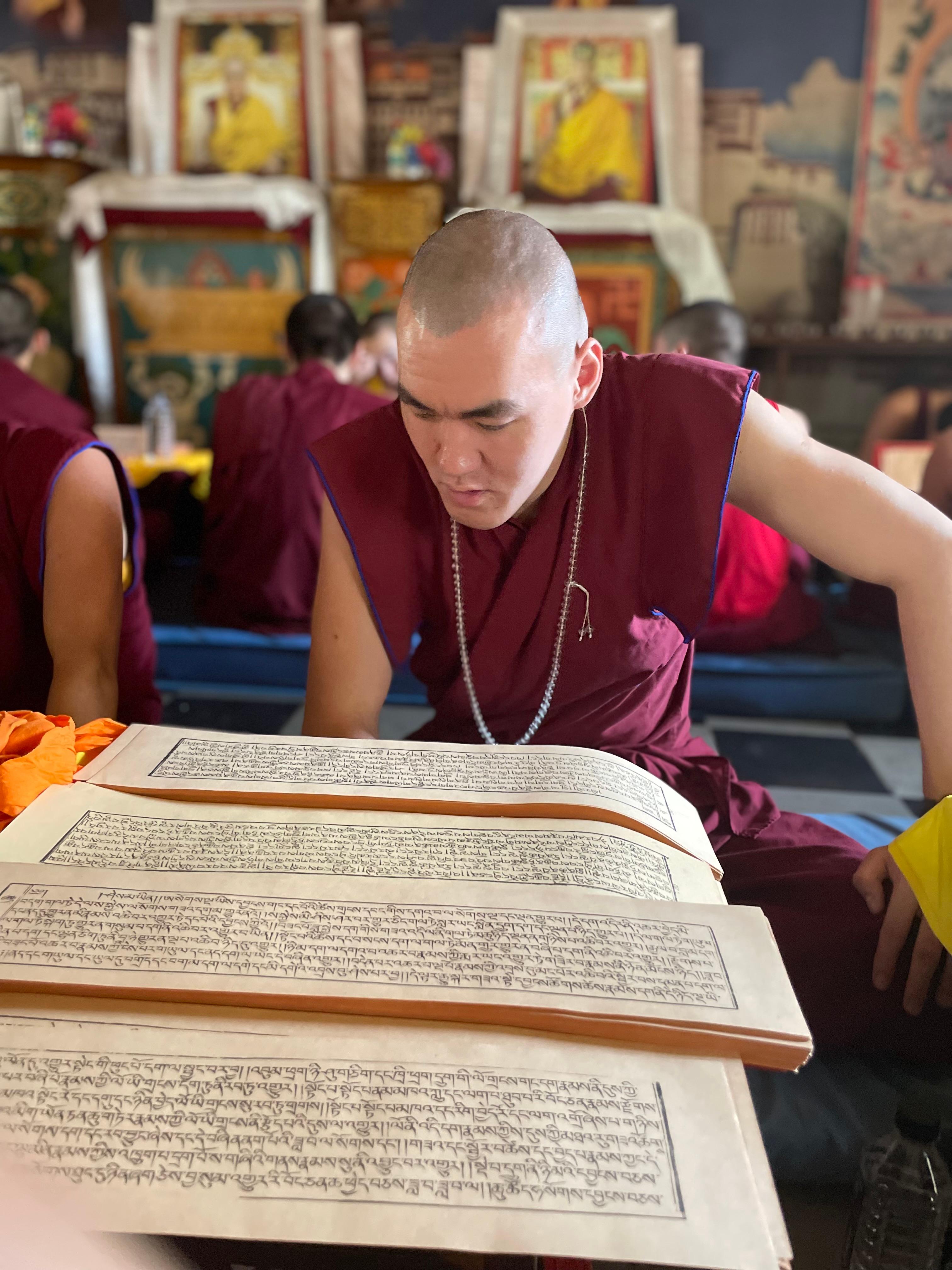 «Я являюсь студентом 3 курса, учёба в целом дается легко. Здесь важна усидчивость. Для меня лично, примером того какой должен быть настоящий монах является Санал-гелюнг Мукубенов, который всегда готов прийти на помощь, всегда всё объяснит и покажет, а самое главное его доброта и сострадательность🙏Нас из Калмыкии там обучается 5 человек», - рассказывает гецул Тензин Цультим (Санал Манджиев).