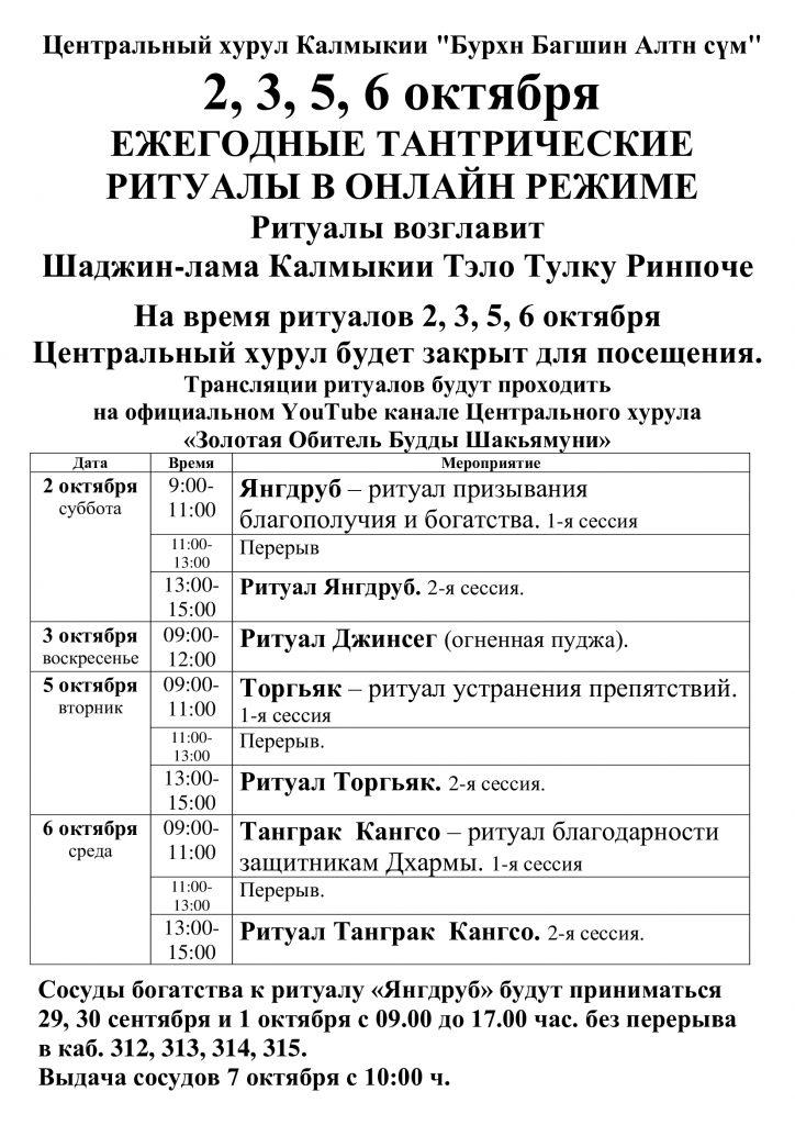 Программа проведения ежегодных тантрических ритуаловПрограмма проведения ежегодных тантрических ритуалов 22 сентября 2021 Пресс-служба Хурула
