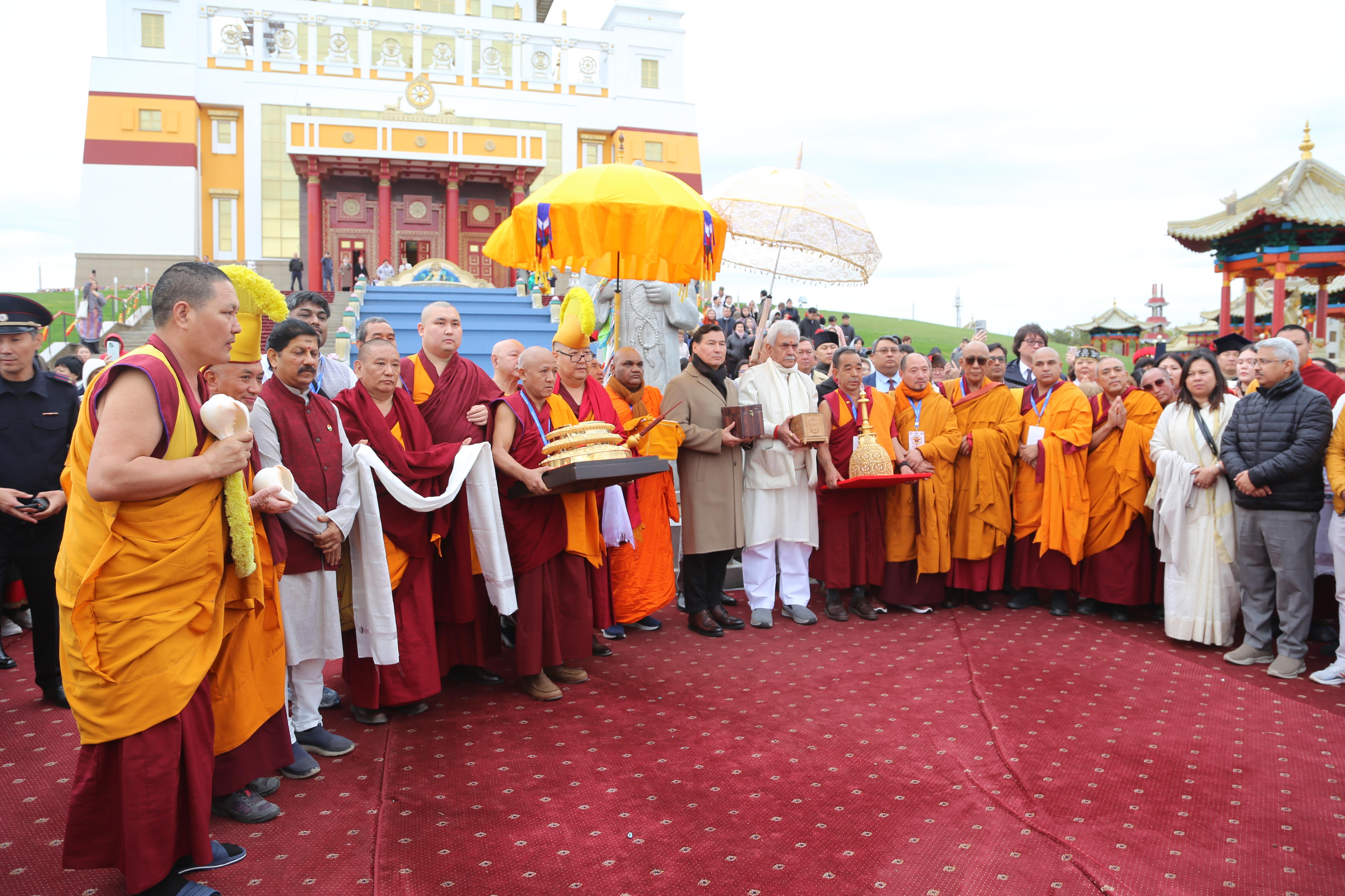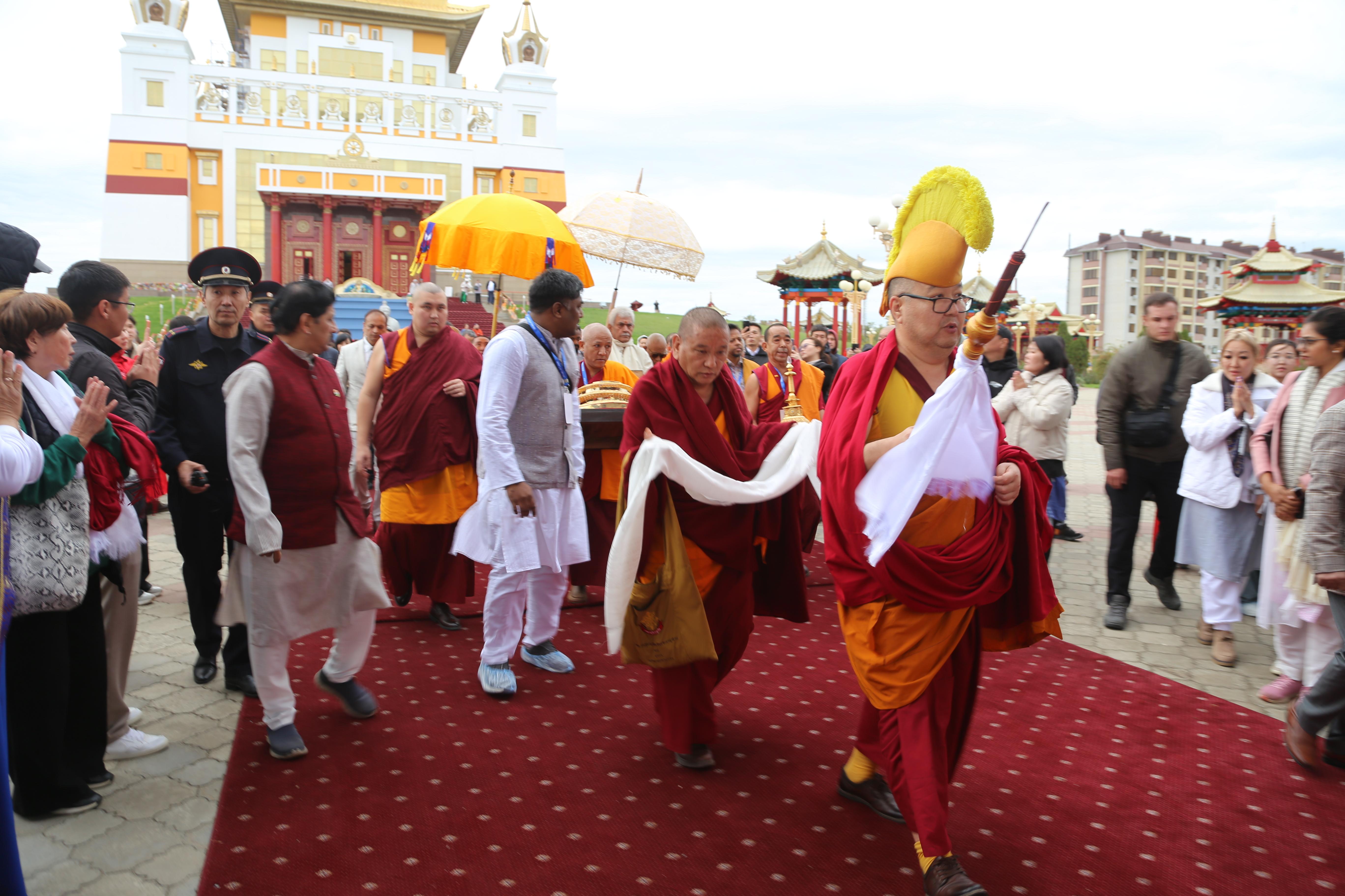 С утра в Центральном хуруле прошла торжественная часть, в ходе которой звучали слова большой благодарности индийской стороне за такую возможность воочию лицезреть и поклониться величайшему наследию буддистов. И руководство республики и Монашеская Сангха отметили большую значимость данного события не только для калмыцкого народа, но и для всей страны, ведь само присутствие реликвий Капилавасту в России уже благословение самого Будды.