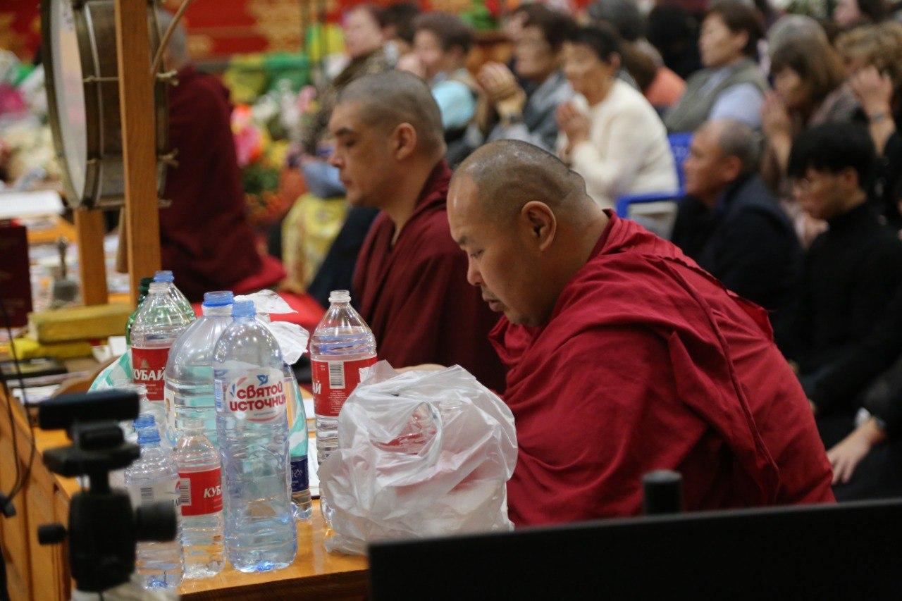 Сегодняшний молебен долгой жизни начали с молебна-обращения к Будде Медицины, ведь сегодня по календарю 15 лунный день. Это один из особенных, священных дней для буддистов ("мацг өдр"). Как отмечают монахи, в такие дни важно посвятить себя духовной практике, соблюдать пост, ведь результат благих и неблагих деяний и проступков увеличивается в 100 тысяч раз.