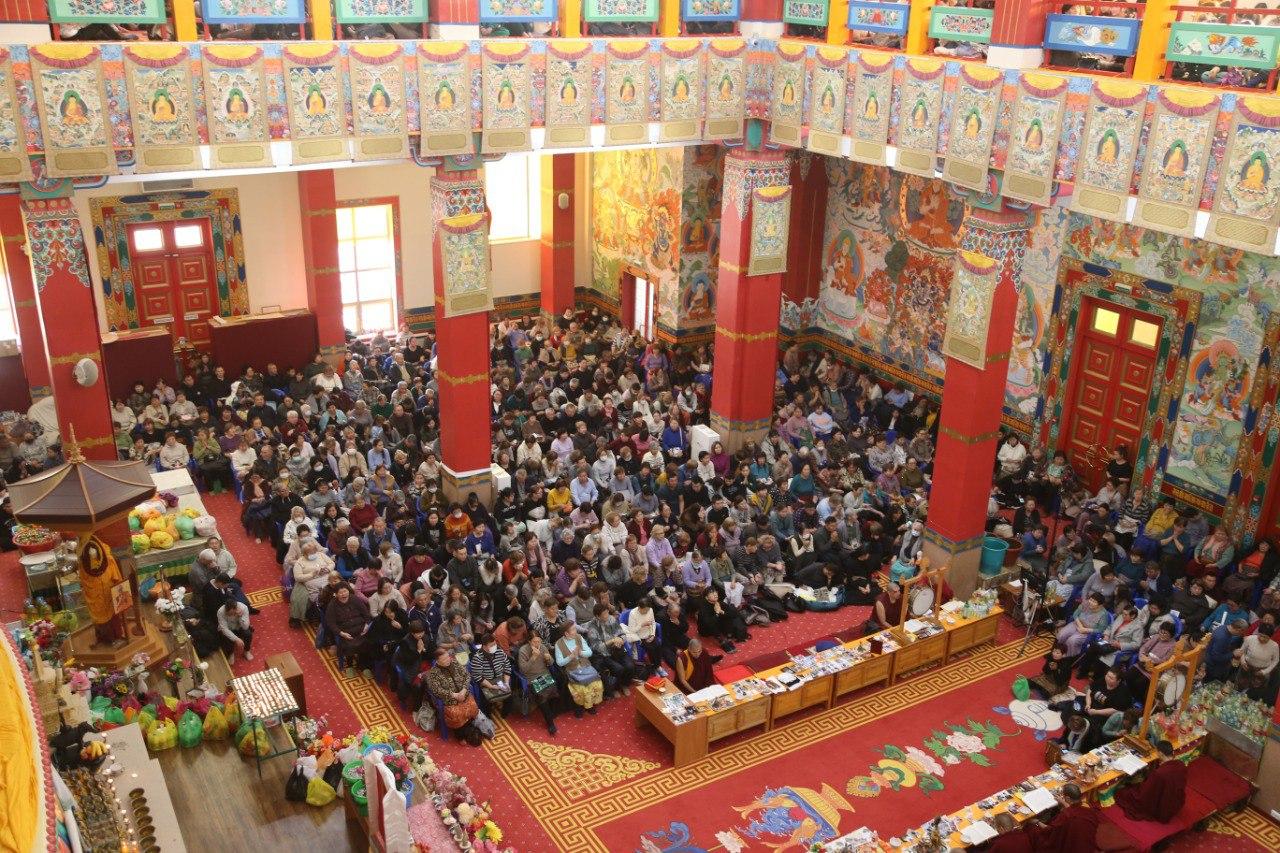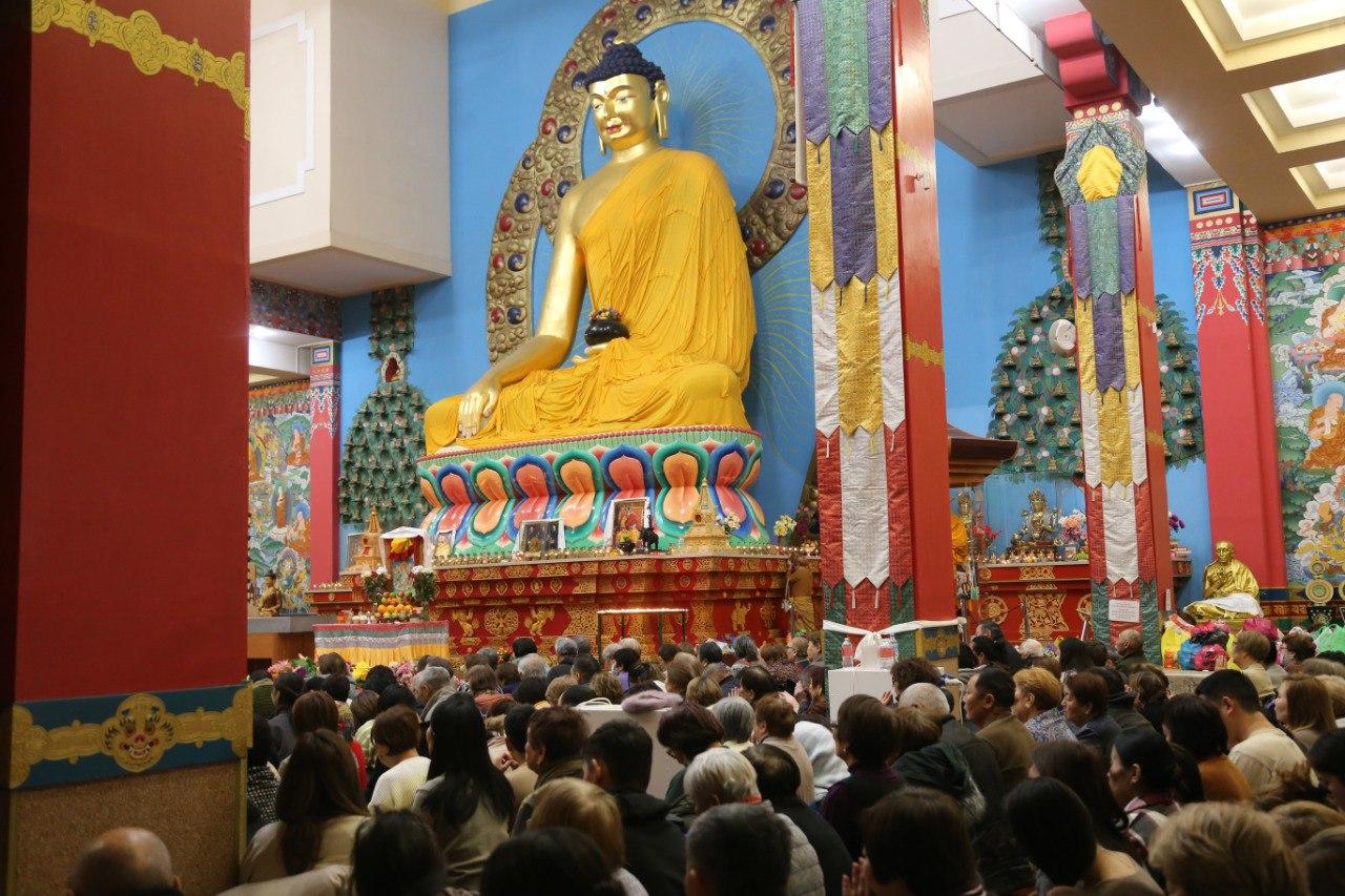 Значимо, что такой особенный день совпал с ритуалом продления годов. Как и во все предыдущие дни сегодня в «Золотой обители Будды Шакьямуни» было многолюдно. И стар, и млад совместно с монахами возносили свои молитвы Будде долголетия Амитаюсу, прося защиты от препятствий, прося благополучия и всех необходимых благ для счастливой жизни. На каждом ритуале наши досточтимые монахи объясняют, что искренне просить надо не только за себя и за своих родных, а за всех живых существ, это куда важнее и значимее.