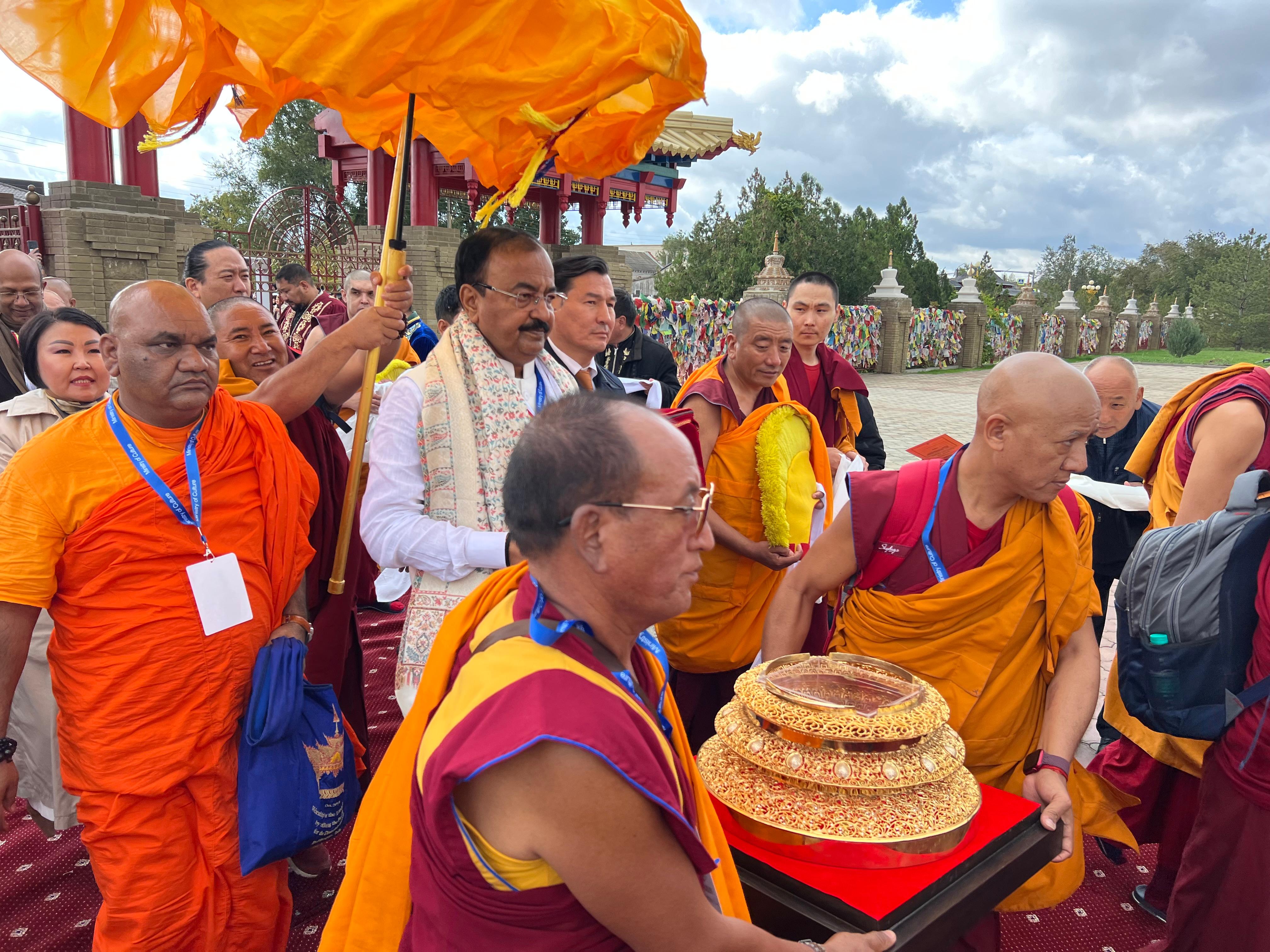 В Элисту прибыла представительная делегация из Индии, более 50 человек. Это и представители Министерства культуры Индии, Национального музея, достопочтенные монахи, во главе с Его Святейшеством Сакья Тризином и члены международной буддийской конфедерации. В своих выступлениях они отметили, что эти реликвии почитались и бережно сохранялись на протяжении более 2000 лет. Их передавали из поколения в поколение. И сегодня святыни представили перед народом Калмыкии, который предан Учению Будды. Важно подчеркнуть, что уже одно присутствие реликвий здесь приносит благословение всем верующим, всей республике, всей нашей стране.