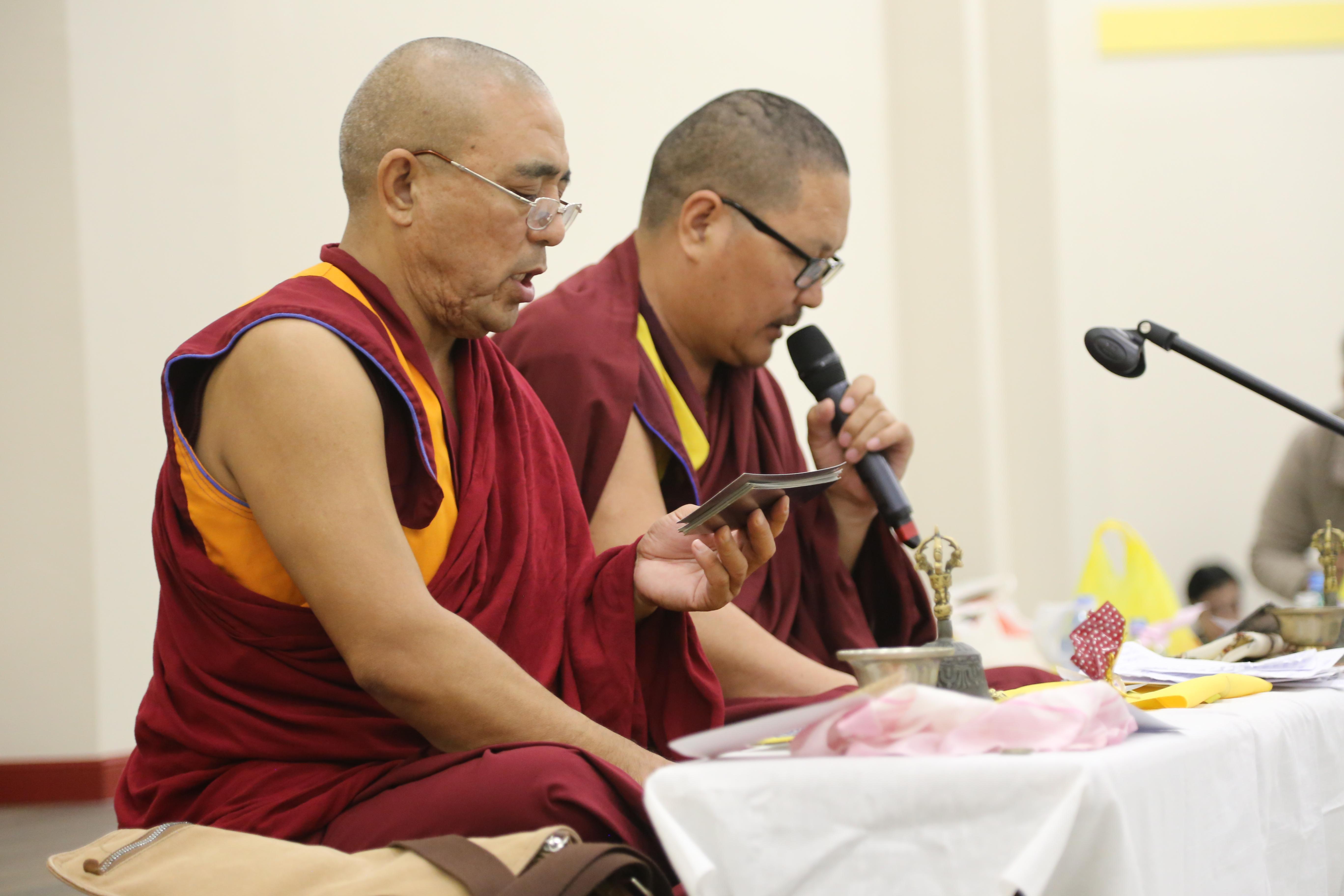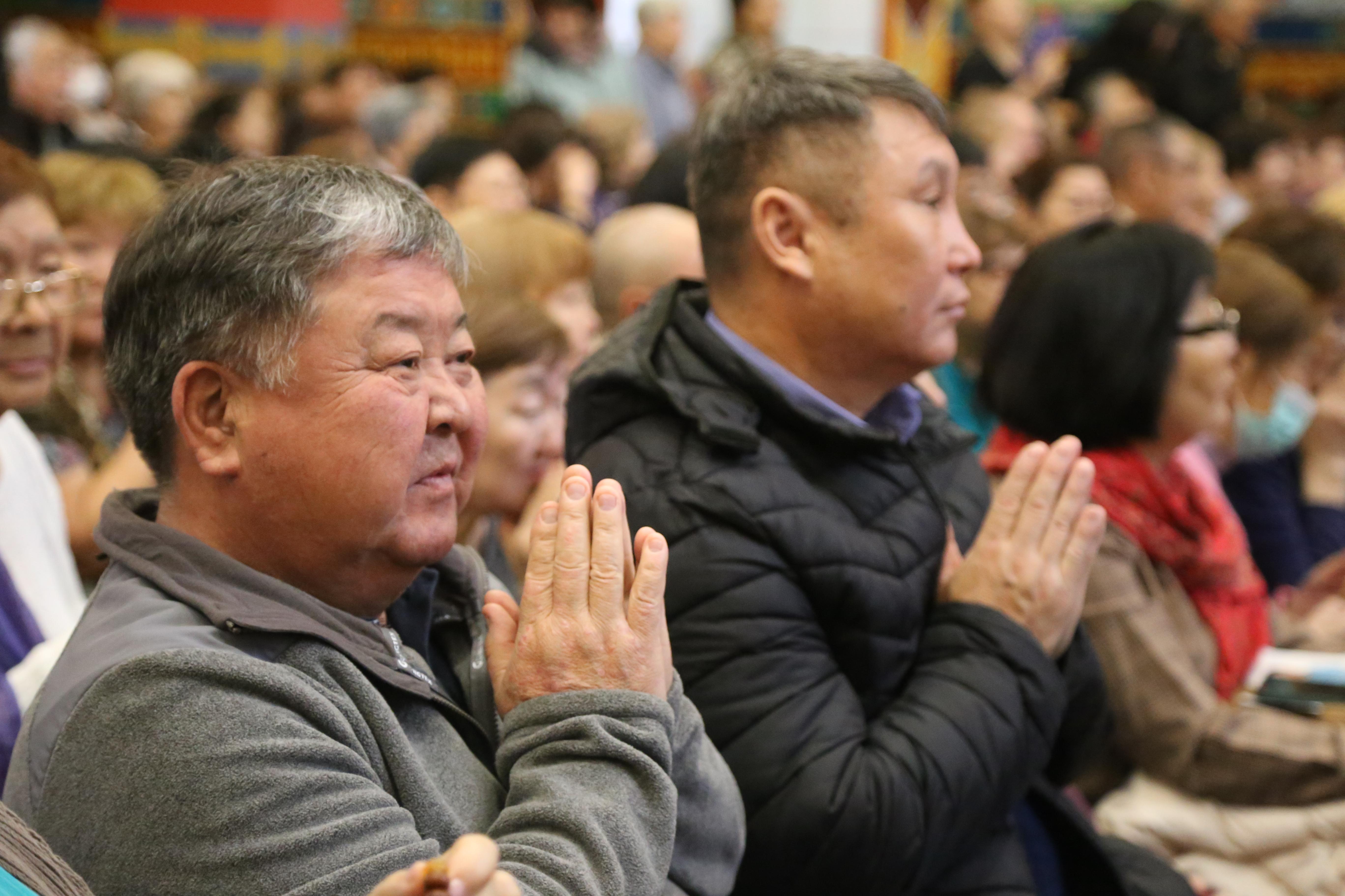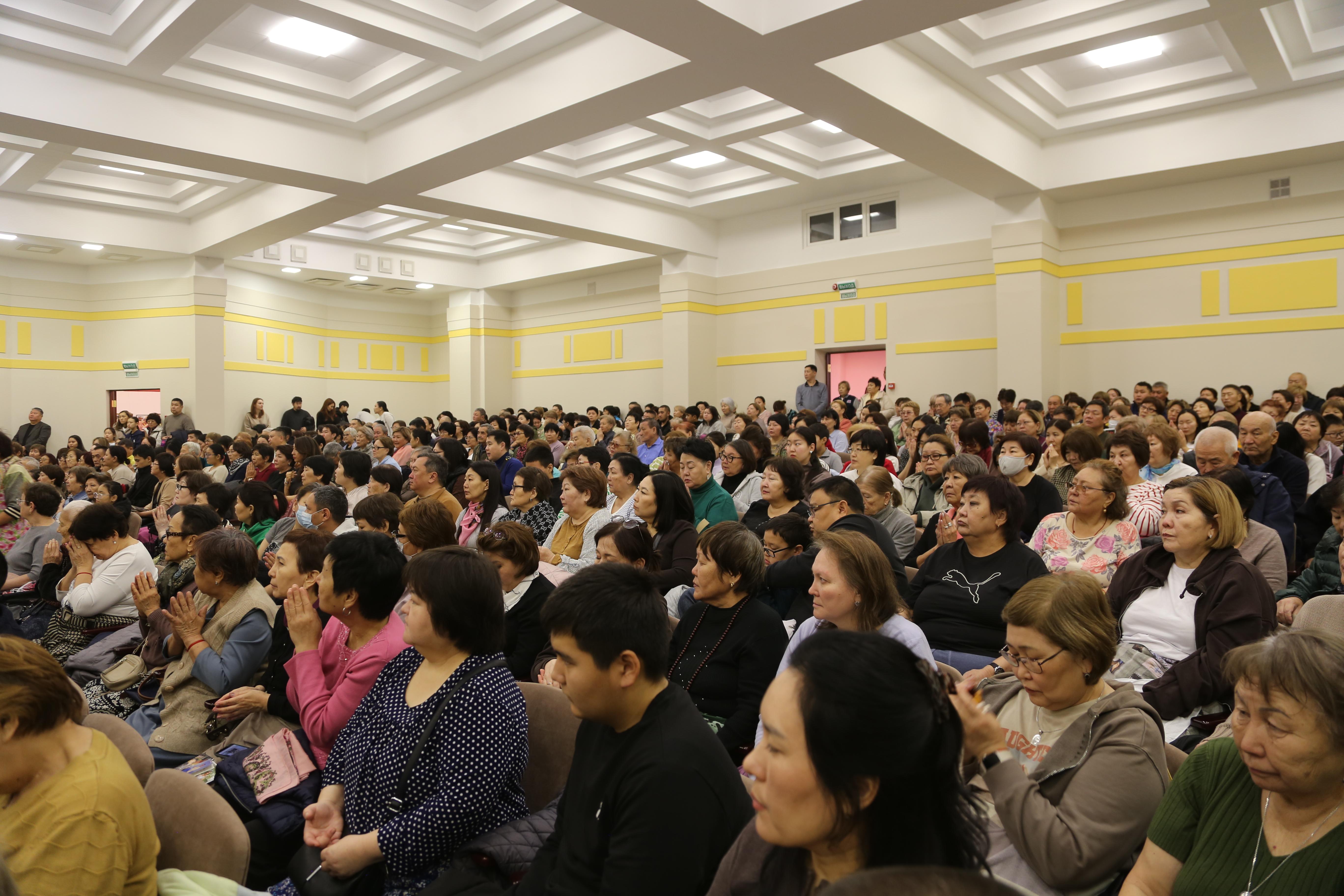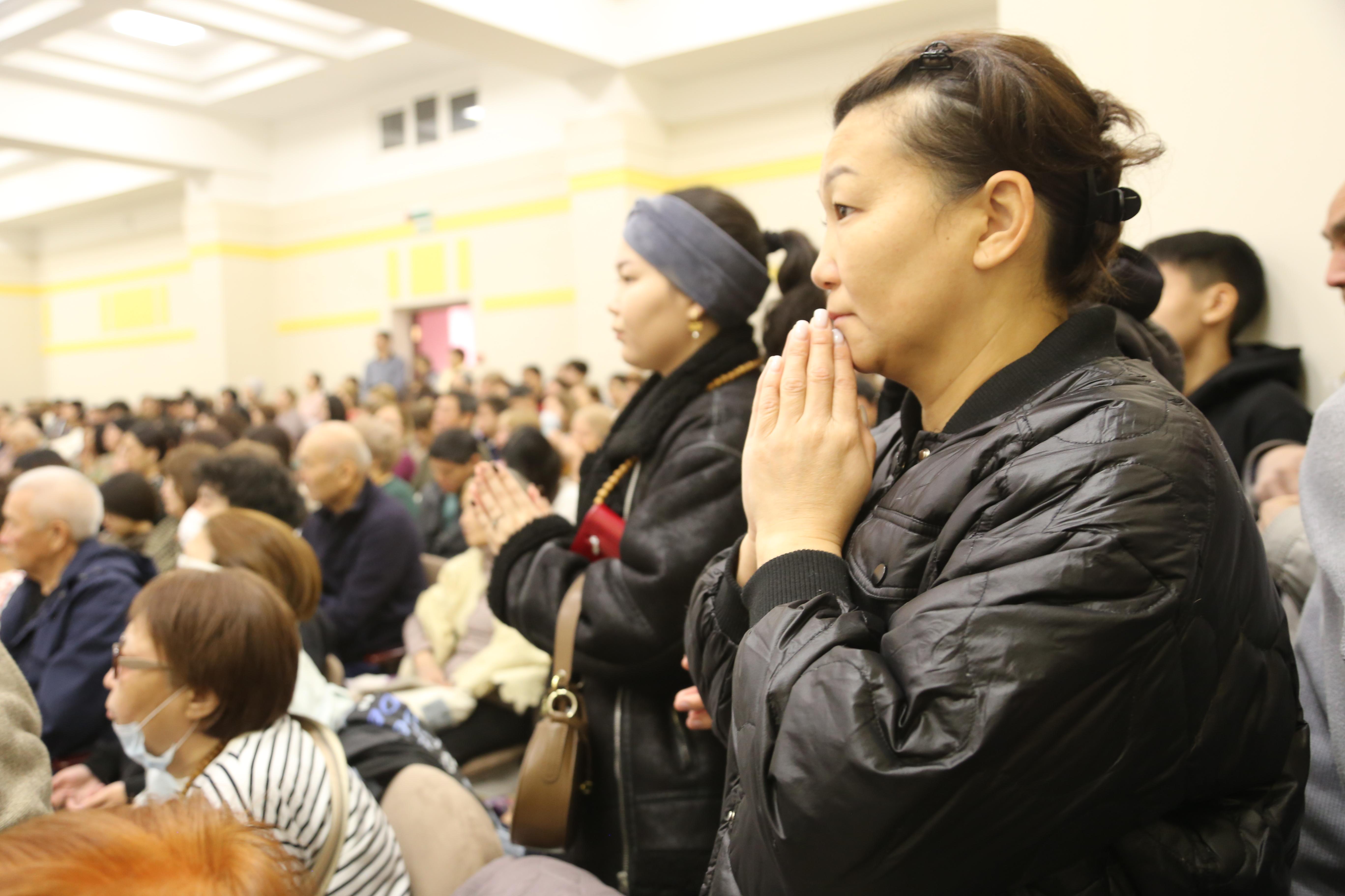 Сегодня в «Золотой обители Будды Шакьямуни» было многолюдно. Верующие расположились на всех трех уровнях, и на протяжении 2,5 часов проводился специальный молебен-обращение к богине долголетия Белой Таре. В завершении всех угостили, освященными во время ритуала, пилюлями и напитком долголетия.