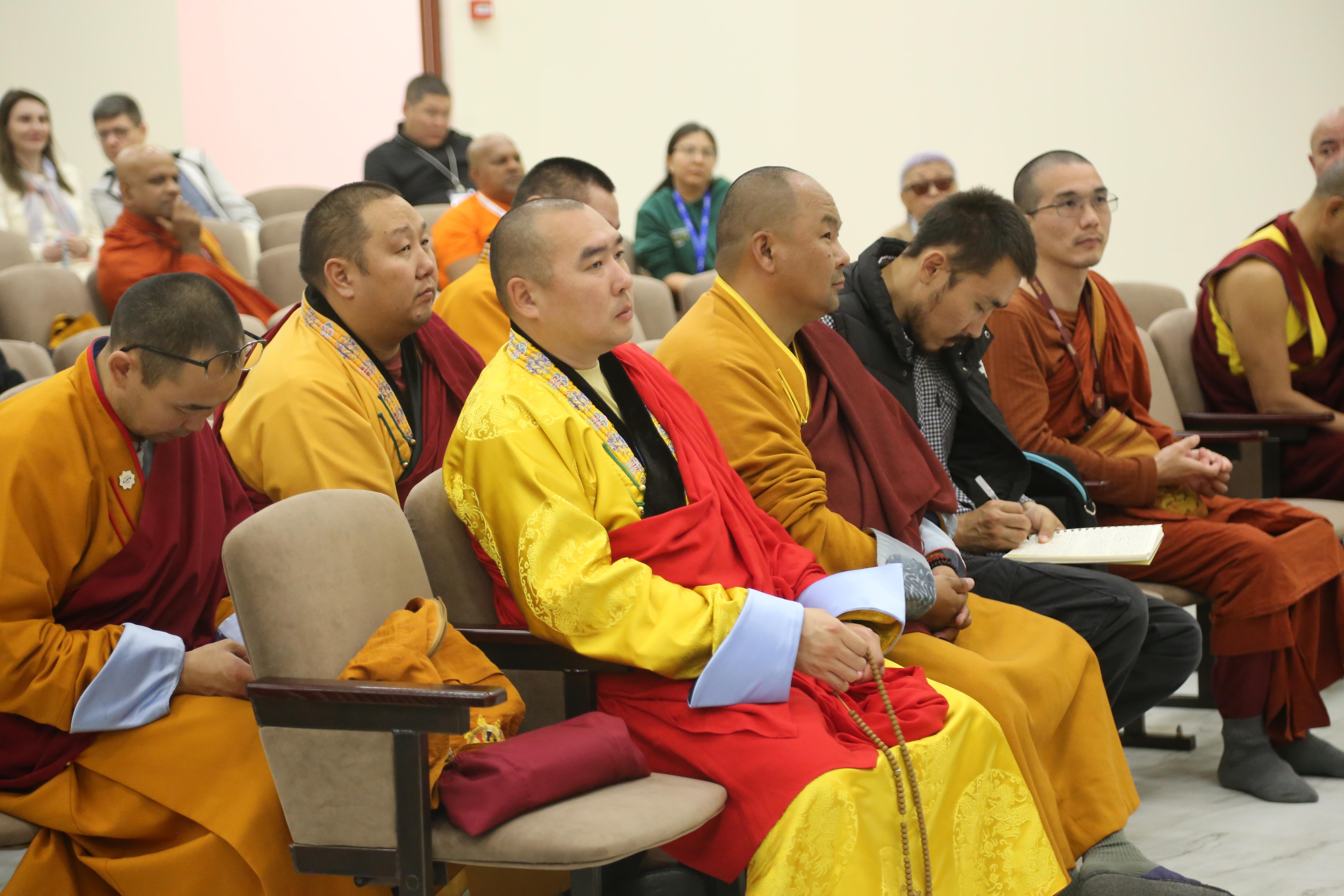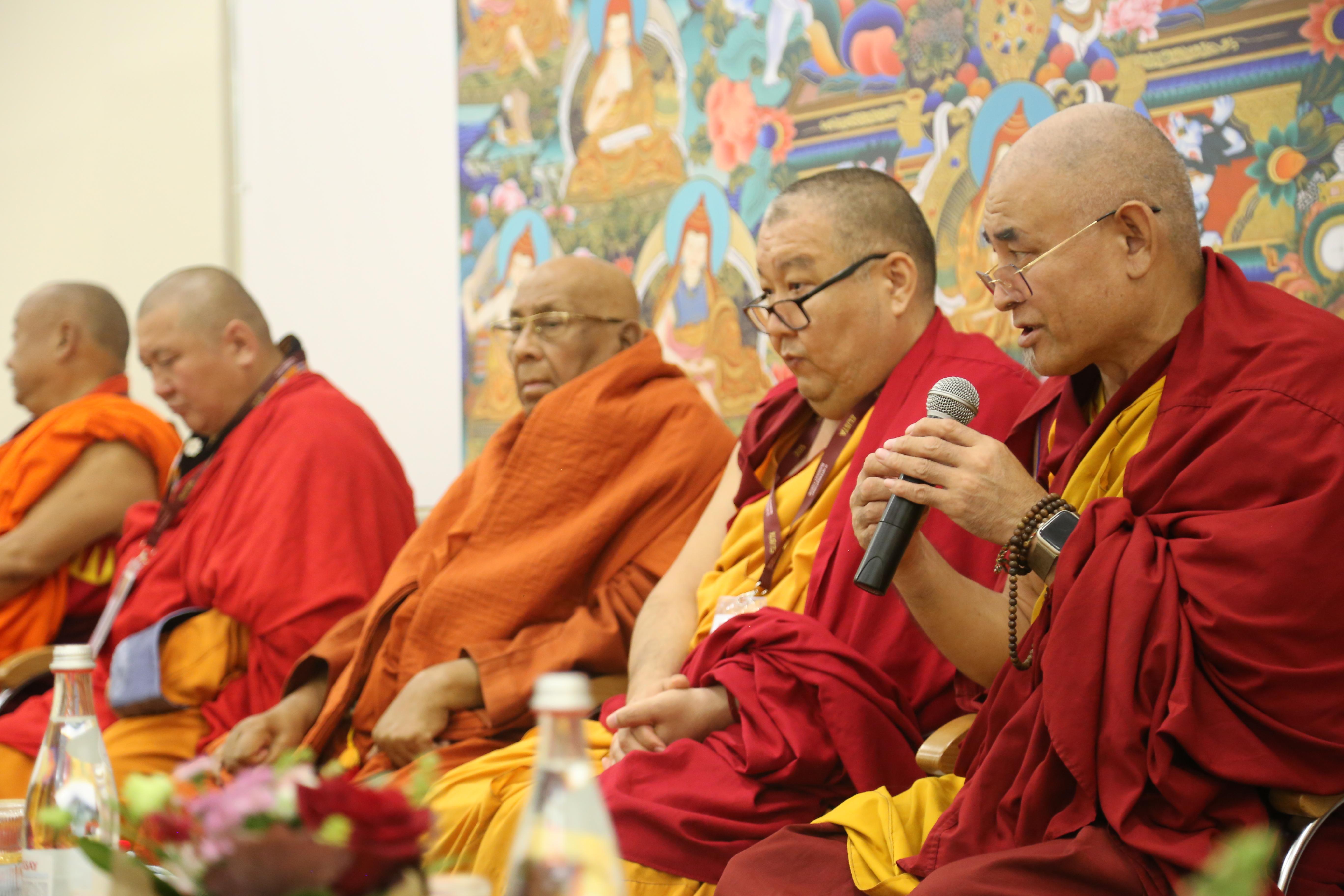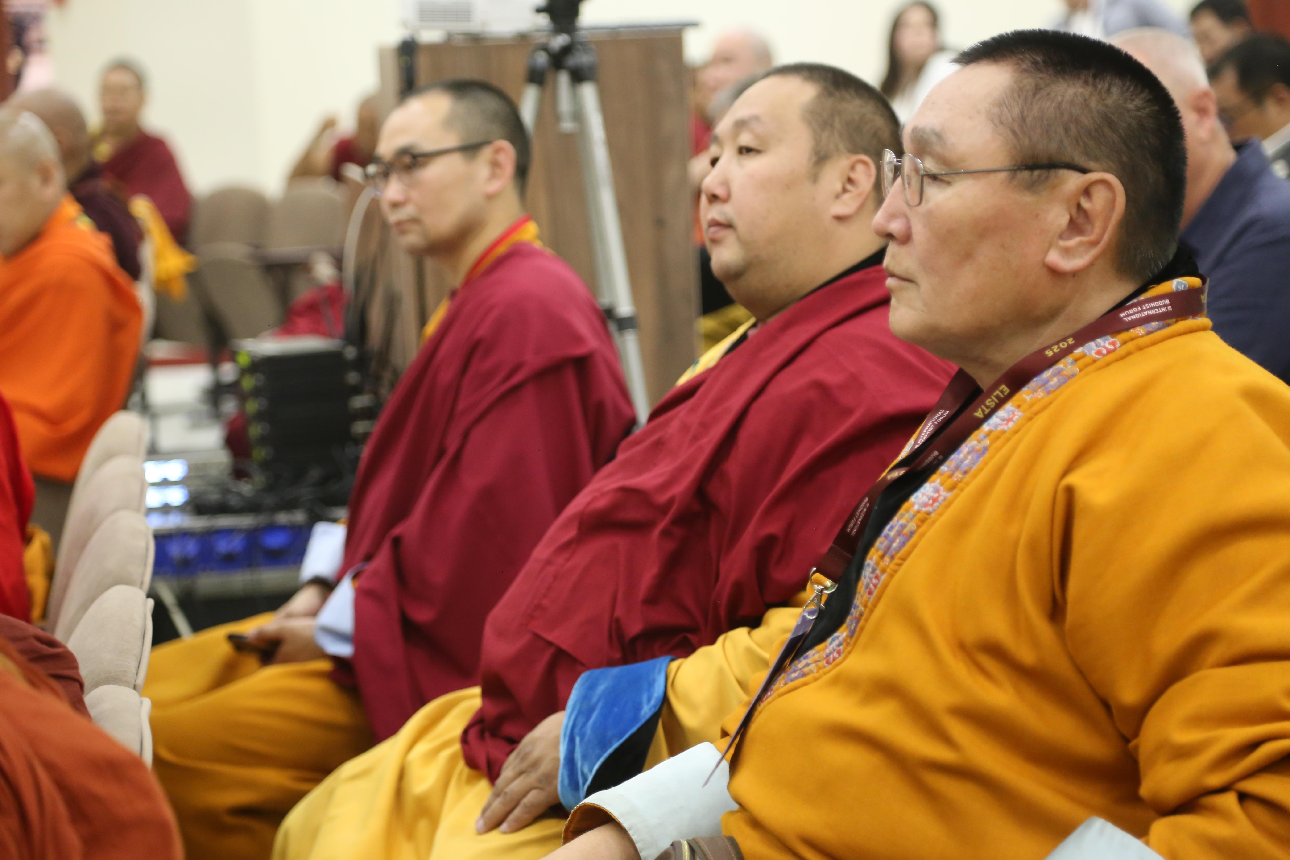 Среди выступающих спикеров был и Шаджин-лама Калмыкии геше Тензин Чойдак, который рассказал, что в нашей республике в былые времена количество монахов достигало 4000. Сегодня исчисляется десятками людей, поэтому эта тема очень важна и актуальна для калмыцкой Монашеской Сангхи.