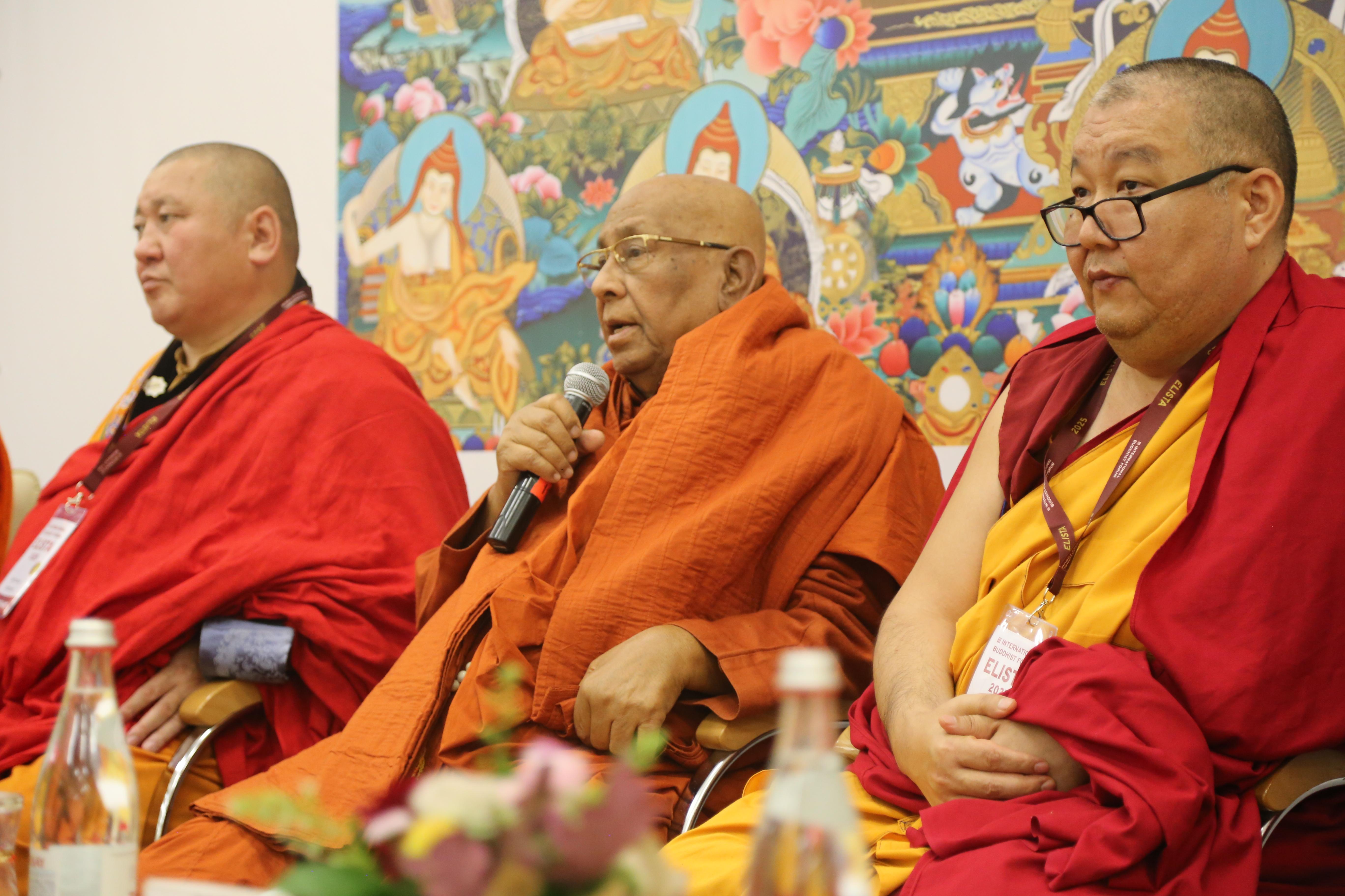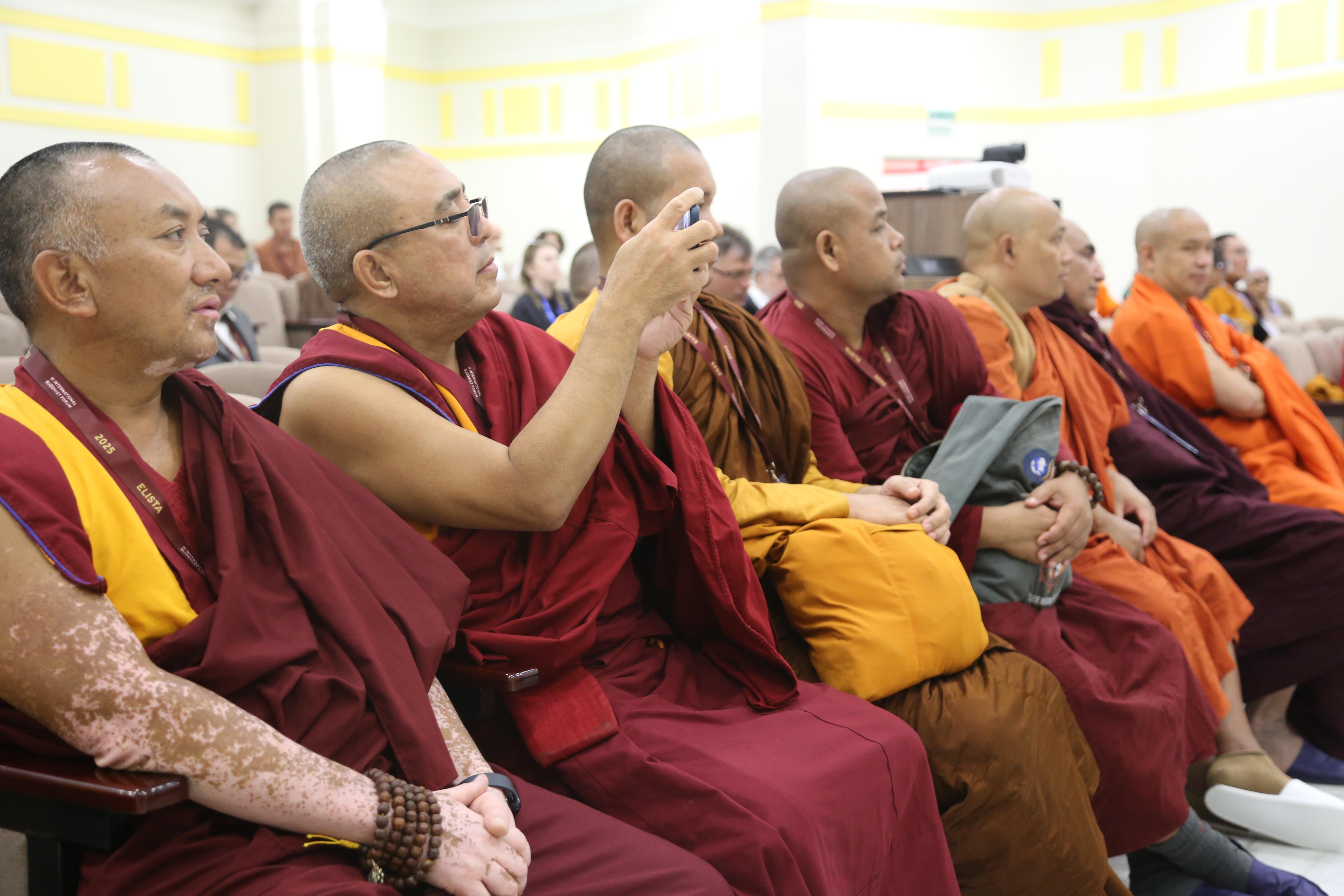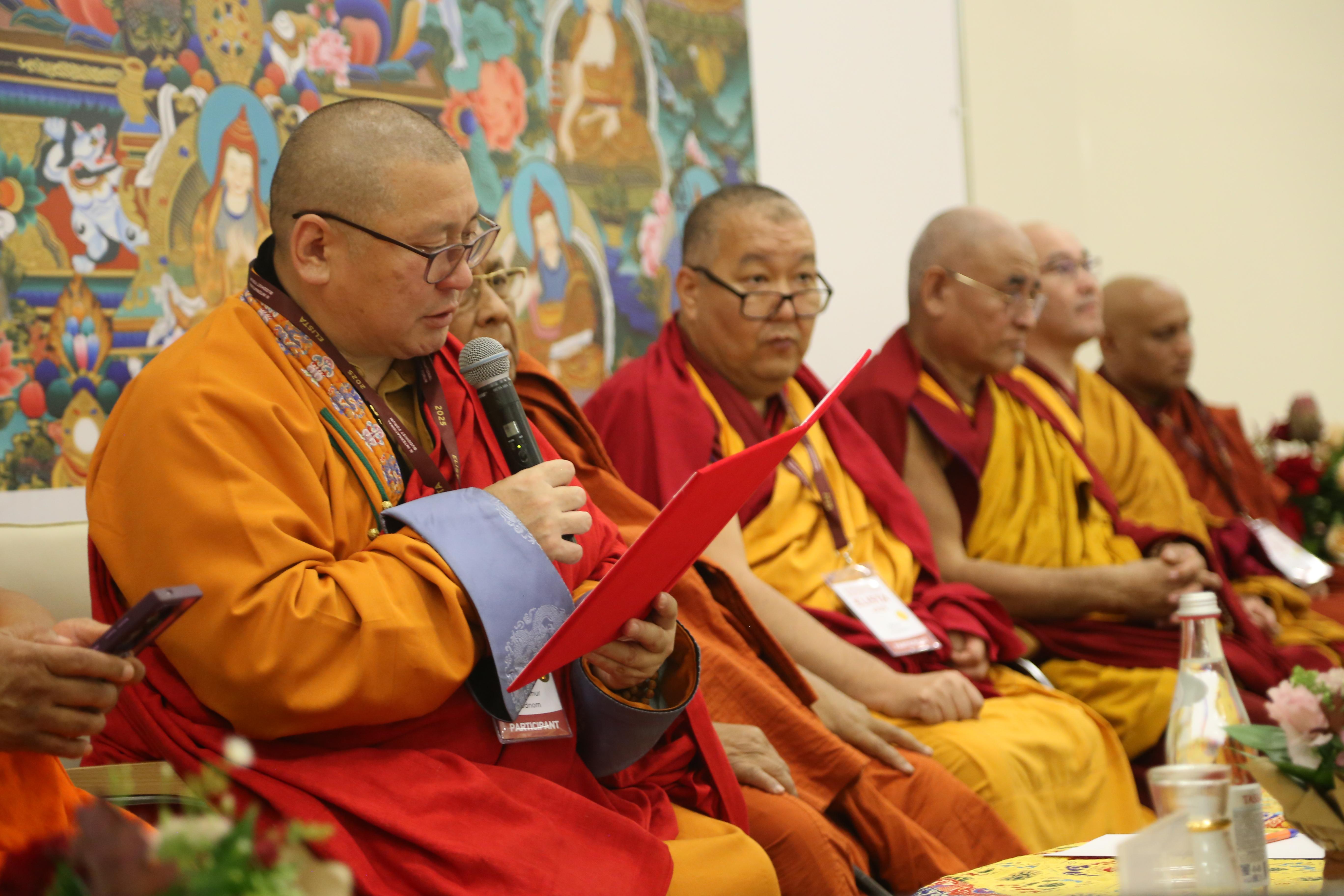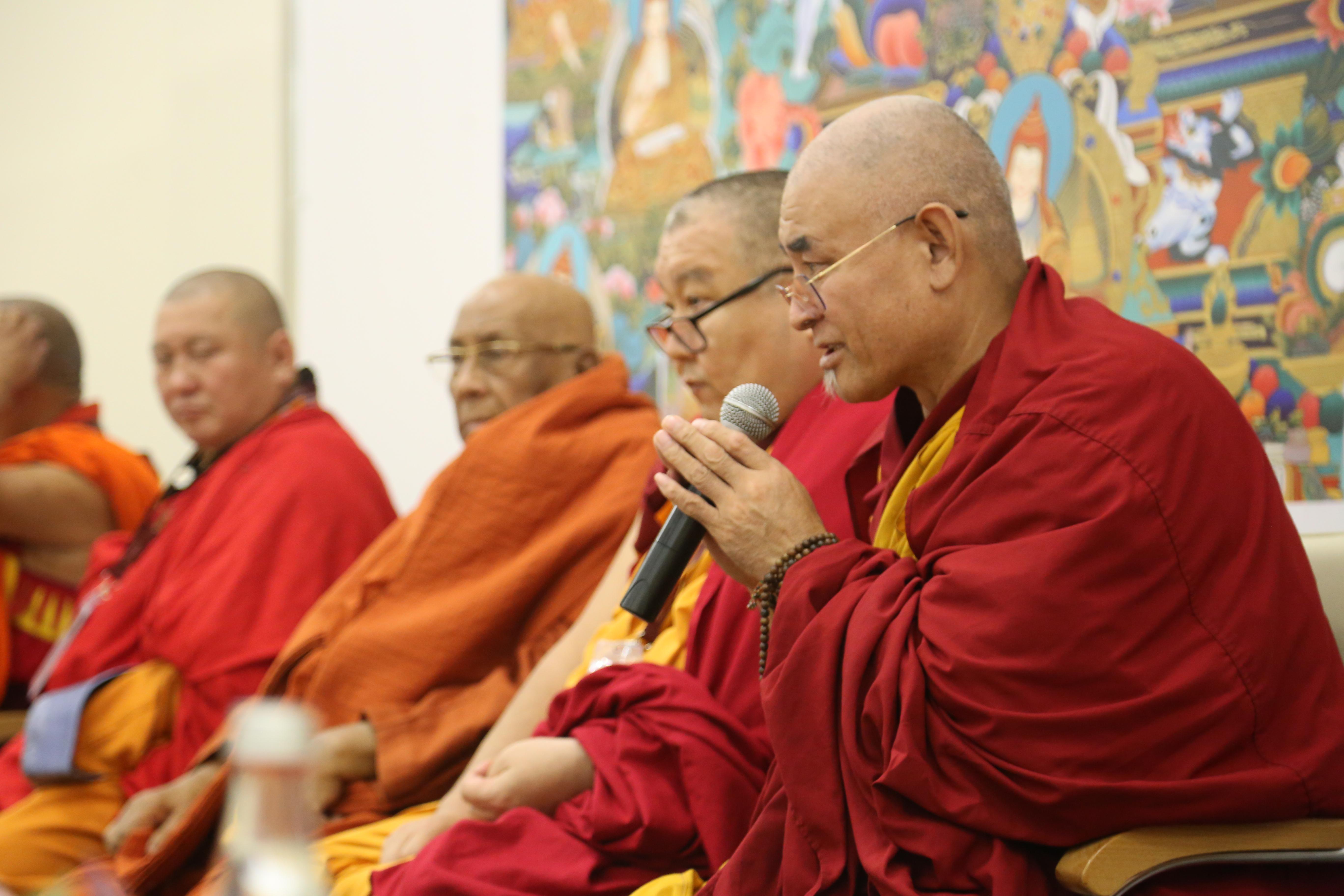 Среди выступающих спикеров был и Шаджин-лама Калмыкии геше Тензин Чойдак, который рассказал, что в нашей республике в былые времена количество монахов достигало 4000. Сегодня исчисляется десятками людей, поэтому эта тема очень важна и актуальна для калмыцкой Монашеской Сангхи.