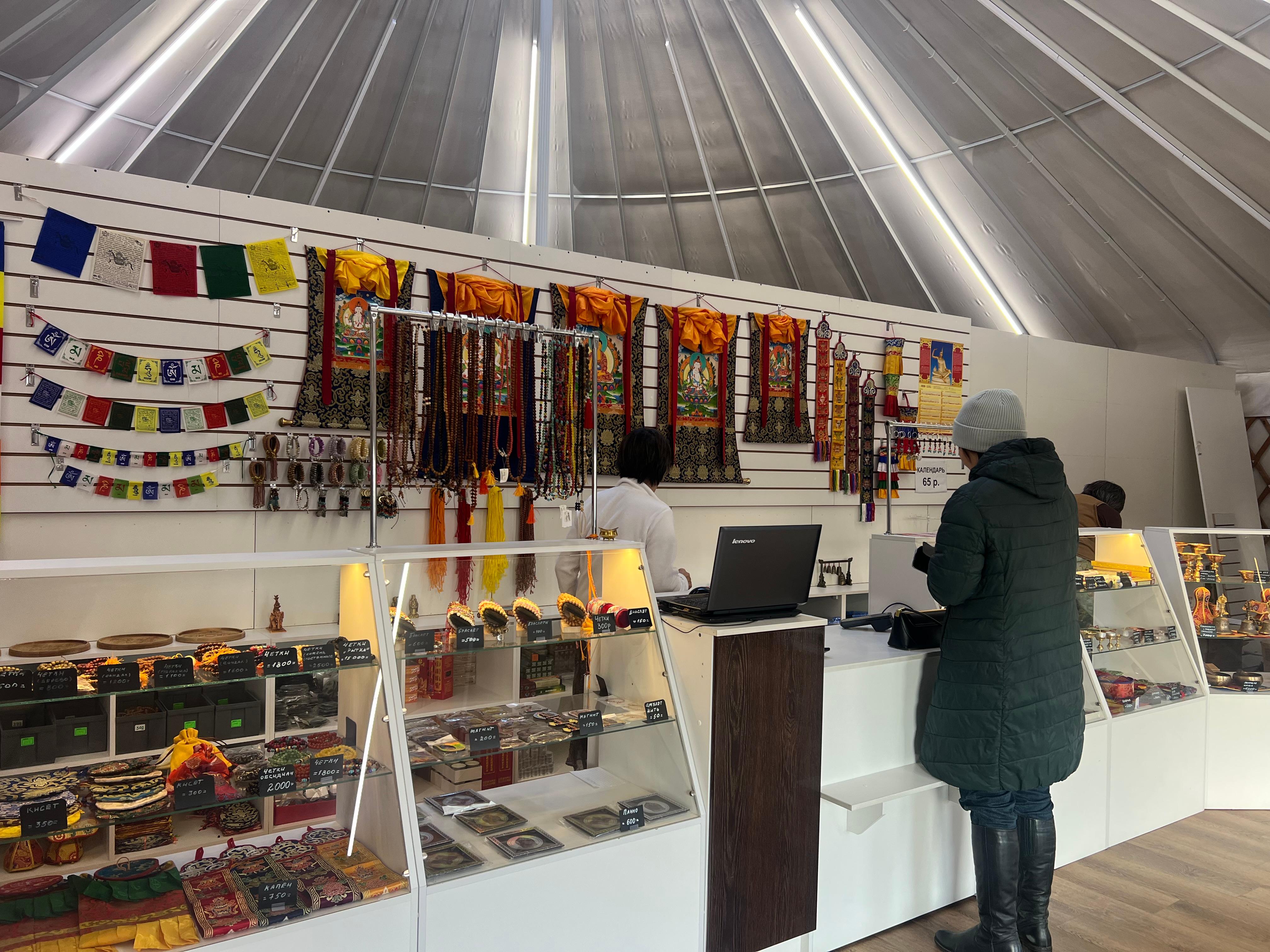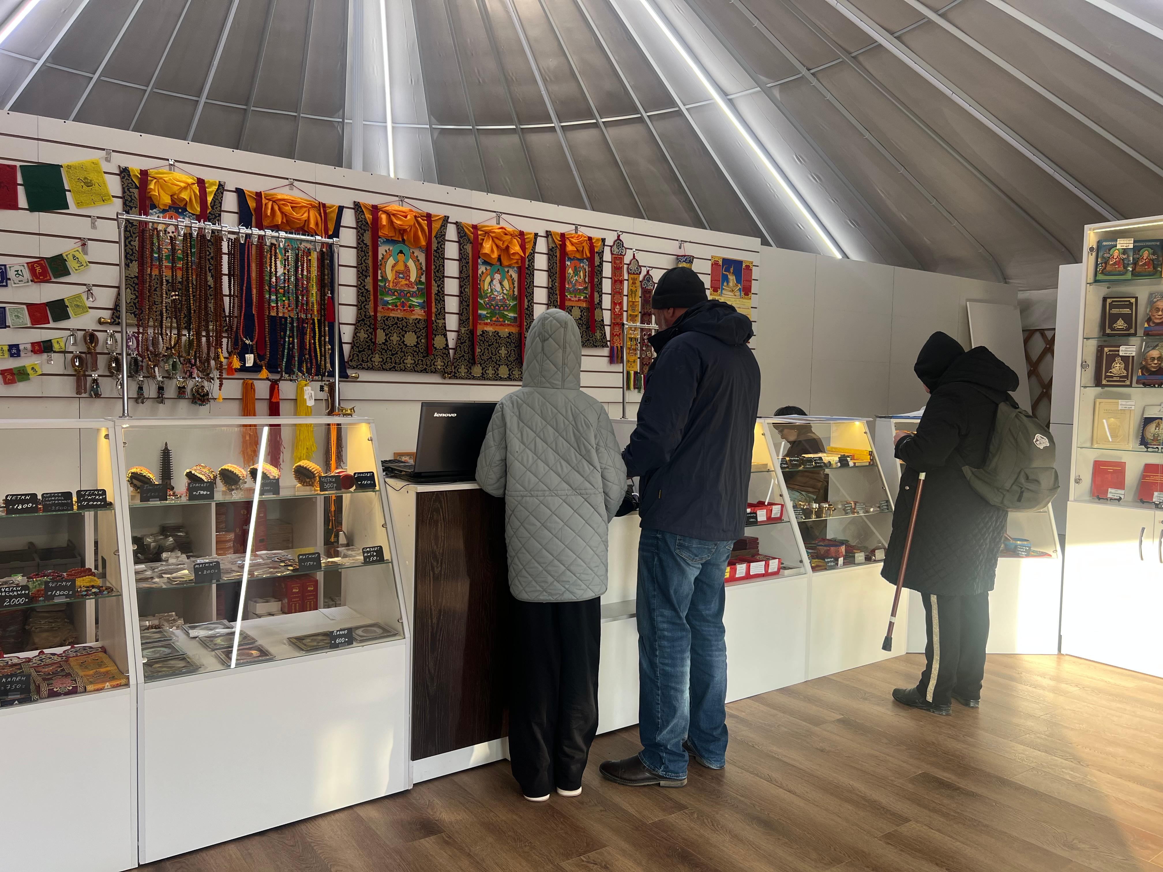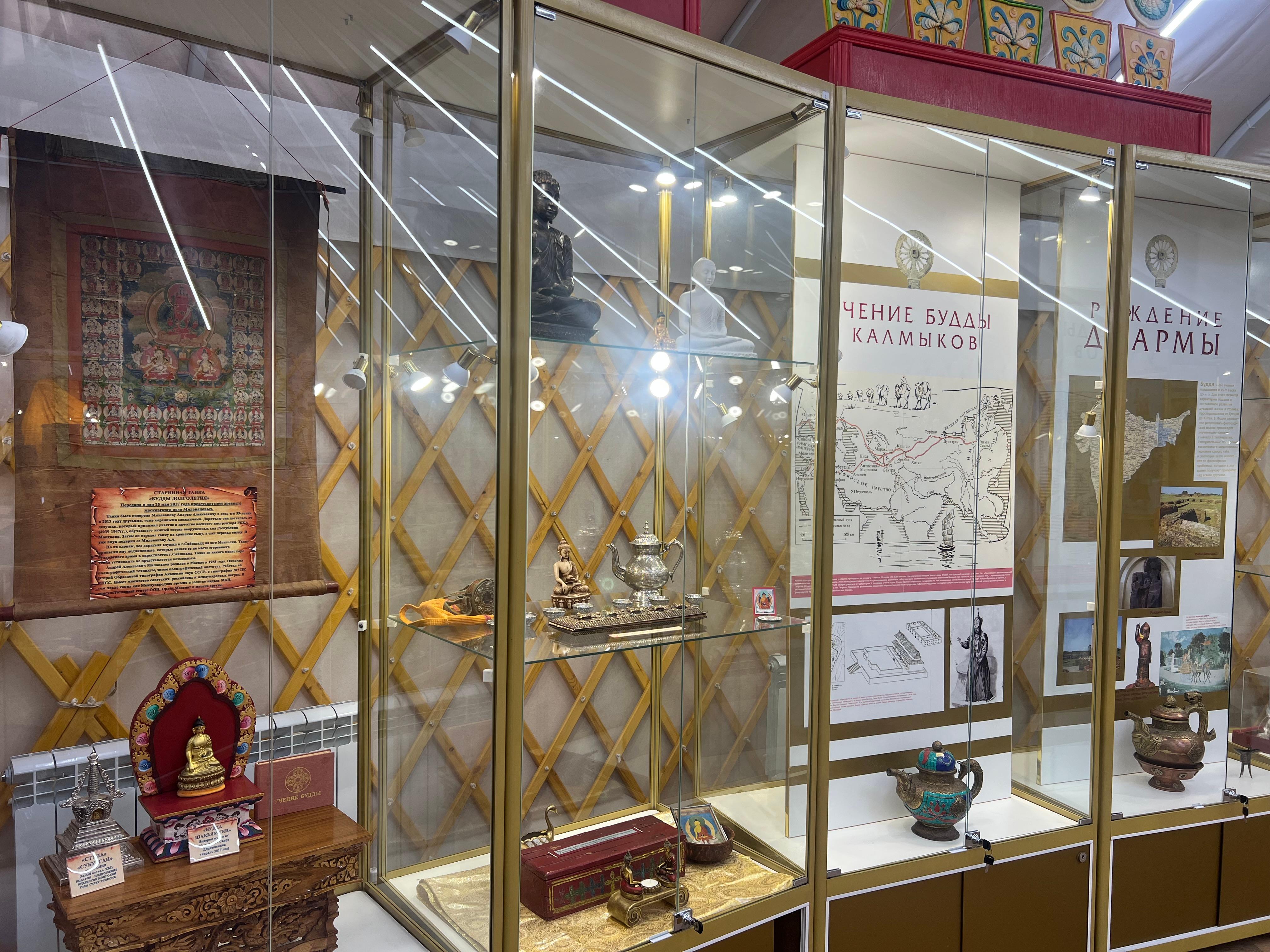 Две большие белые кибитки теперь украшают территорию главного буддийского храма Калмыкии. В одну из них переехал магазин с буддийской атрибутикой, который ранее располагался в фойе «Золотой обители Будды Шакьямуни», в другой раскинулся музей «Истории буддизма Калмыкии». В эти дни шли подготовительные работы, сотрудники музея готовили экспонаты, выставочные стенды. Уже сегодня музей принял первых своих посетителей.