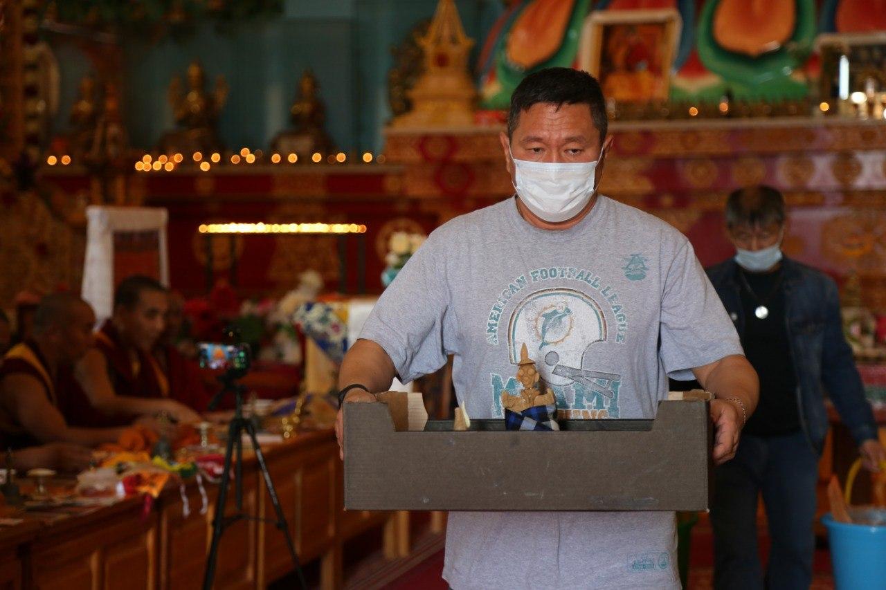 Священнослужители подготовили из теста специальный сосуд (тело), который вбирал в себя также все плохое и негативное. Стоит отметить, что ритуал направлен не только для того, чтобы избавиться от всего вышеперечисленного, но и чтобы таким путем устранить препятствия и создать людям благоприятные условия для ведения духовной практики Учения Будды.