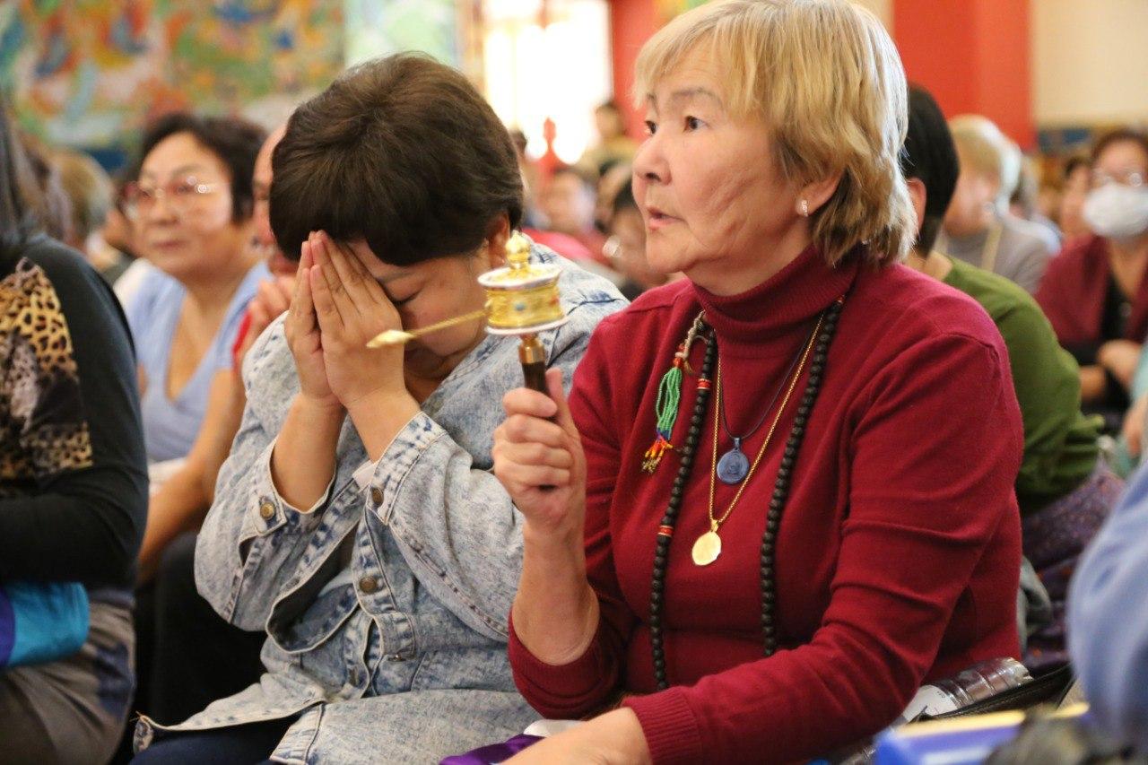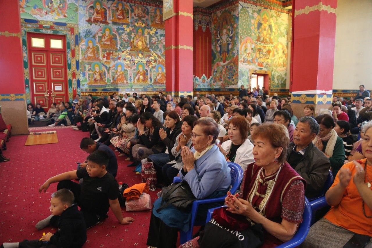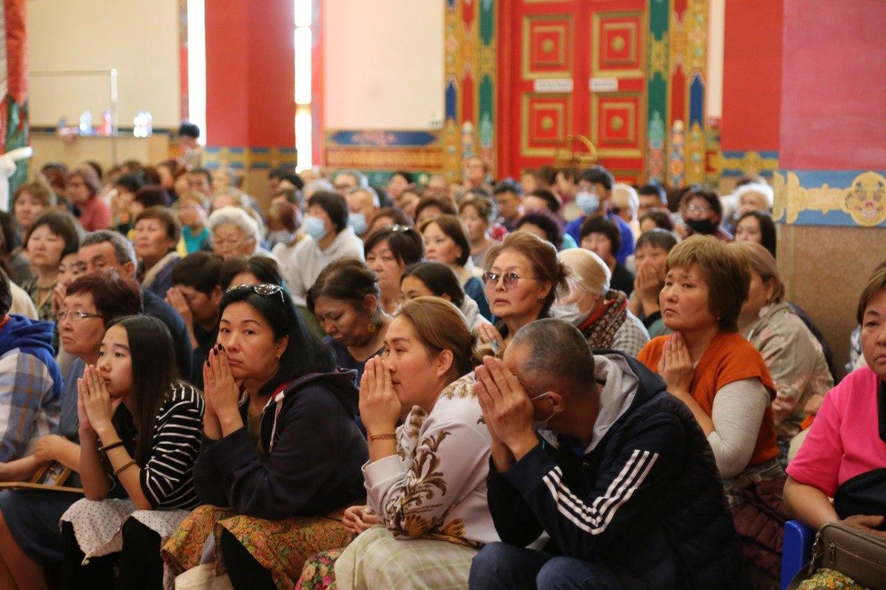 Сегодня с раннего утра в Центральном хуруле многолюдно. Каждый пришел принять участие в ритуале устранения препятствий «Шернинг Дудок». Монахи во главе с досточтимым Гюмед Кхентул Ринпоче на протяжении двух часов читали «Сутру Сердца», при этом каждому верующему раздали небольшие кусочки теста. Сминая его в ладошке и вознося молитвы Бурханам, каждый участник ритуала мысленно представлял как избавляется от гнева, зависти, всех негативных моментов, болезней, неудач и всех препятствий, которые встречаются на пути.