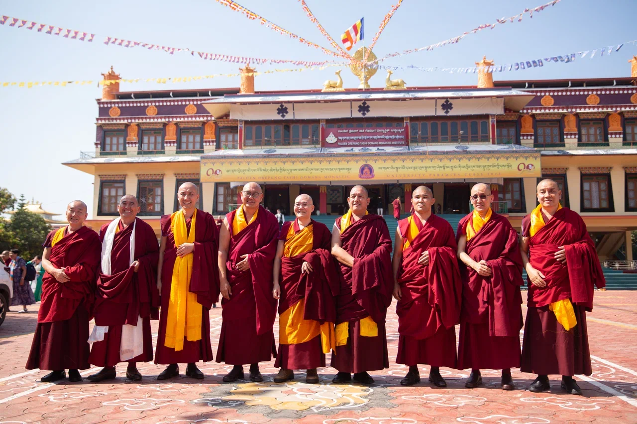 В Индии в преддверии получения высокого звания «Геше -лхарамба» Тензин Норзанг (Санал Мукубенов) с другими монахами организовали большой молебен в Дрепунг Гоманге