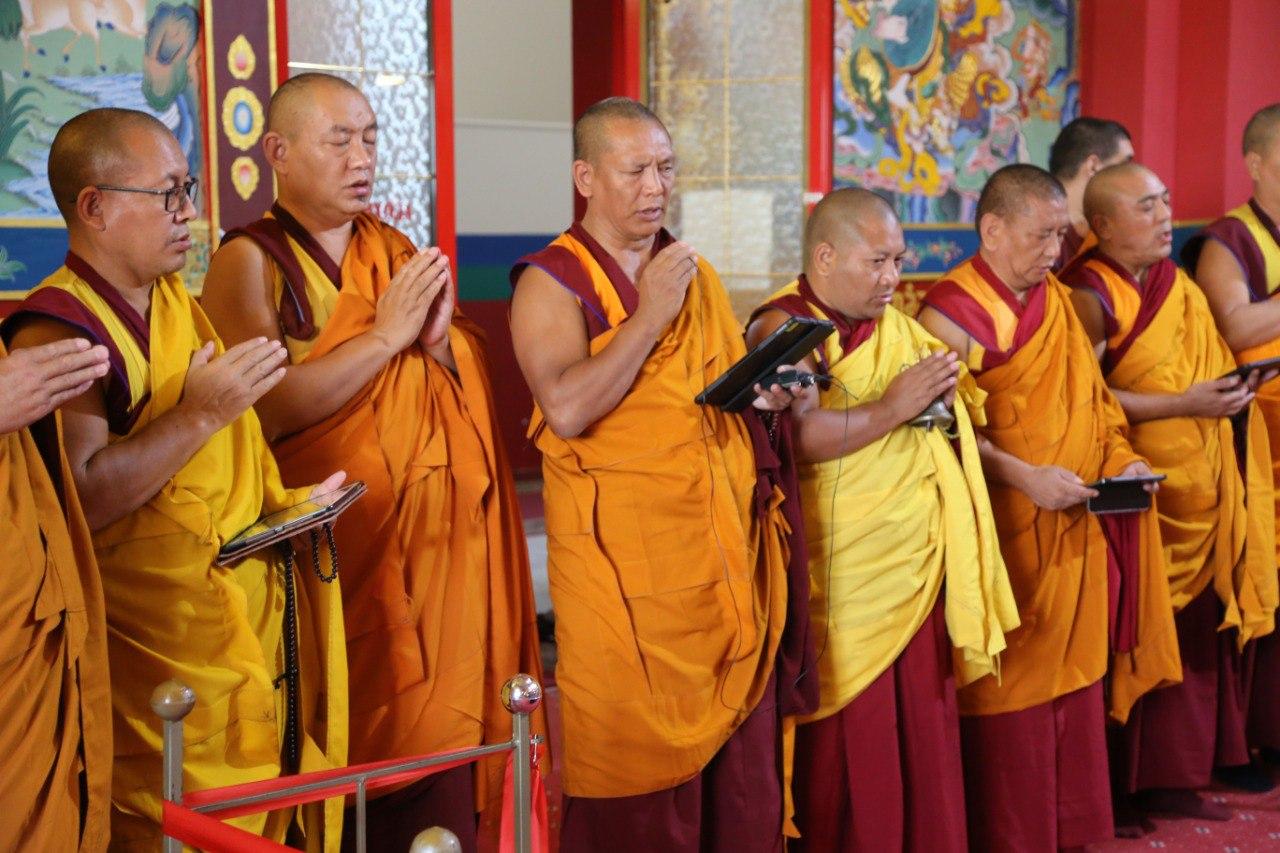 Нараспев читая молитвы, монашеская делегация из монастыря Дрепунг Гоманг во главе с геше-лхарамба Тензин Сангпо Ринпоче освятили место под будущую мандалу. На сей раз в Калмыкии решили возвести мандалу божества Сострадания - Авалокитешвары.