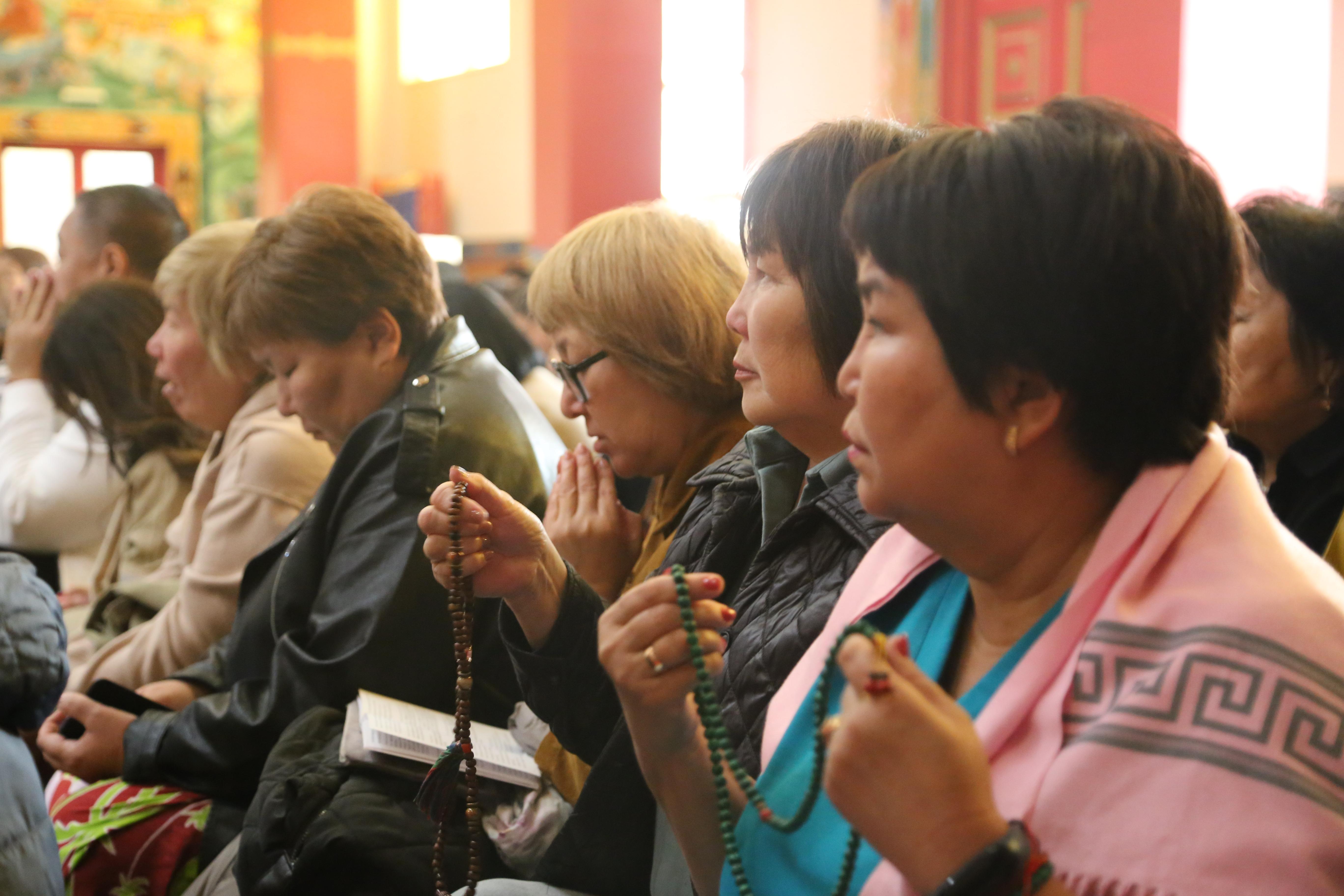 С самого утра в большом молельном зале многолюдно. Все участники тантрического действа - от мала до велика сосредоточены. Внимая молитвам монахов, каждый просит Бурханов устранить любые препятствия в жизни, просит благоденствия и мира.
