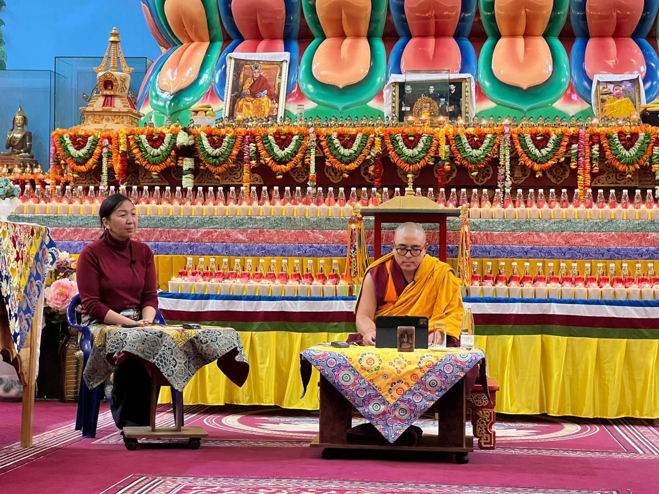 С раннего утра в Центральном хуруле начались праздничные мероприятия. Этот день многие начали с принятия однодневных обетов Махаяны. Досточтимый геше Чангчуб разъяснил верующим о смысле церемонии принятии обетов, о том как важно в такой святой день, и в таком святом месте посвятить себя духовной практике. Рассказал и том, что этот день принято считать и днем почитания родителей, днем почитания Матери, ведь именно в благодарность своей маме, царице Махамайе, Будда Шакьямуни поднялся на небеса Тушита и даровал ей там мудрое своё Учение. После - жители земли призвали Великого Учителя снизойти в их мир, он согласился. Это произошло в местечке Санкасия - территория нынешней Индии. И вот с того времени буддисты отмечают этот священный праздник.