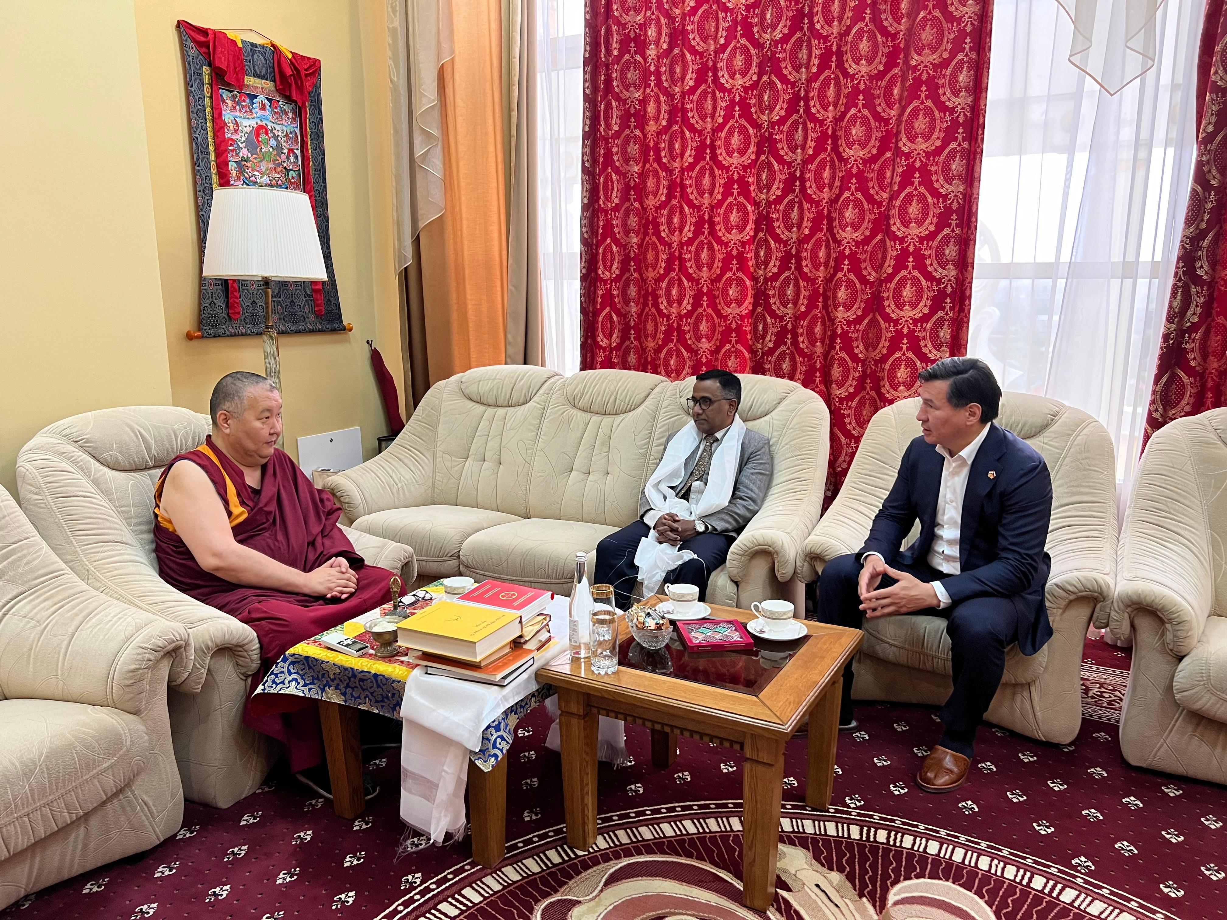 В Калмыкию на Международный буддийский форум привезут священные реликвии - мощи Будды Шакьямуни. Об этом сообщил Глава региона Бату Хасиков на встрече с Шаджин-ламой Калмыкии геше Тензин Чойдаком, в ходе визита министра по вопросам образования и всеобщего благополучия при Посольстве Индии в Москве господина Винай Кумара. Гость накануне прибыл в степной регион и первым делом посетил «Золотую обитель Будды Шакьямуни». Кроме того, индийская сторона намерена подарить калмыцкому народу величественную статую Будды. Как отметил Бату Сергеевич, важно сейчас все эти моменты проговорить с Шаджин-ламой, чтобы всё было по канонам и правильно.
