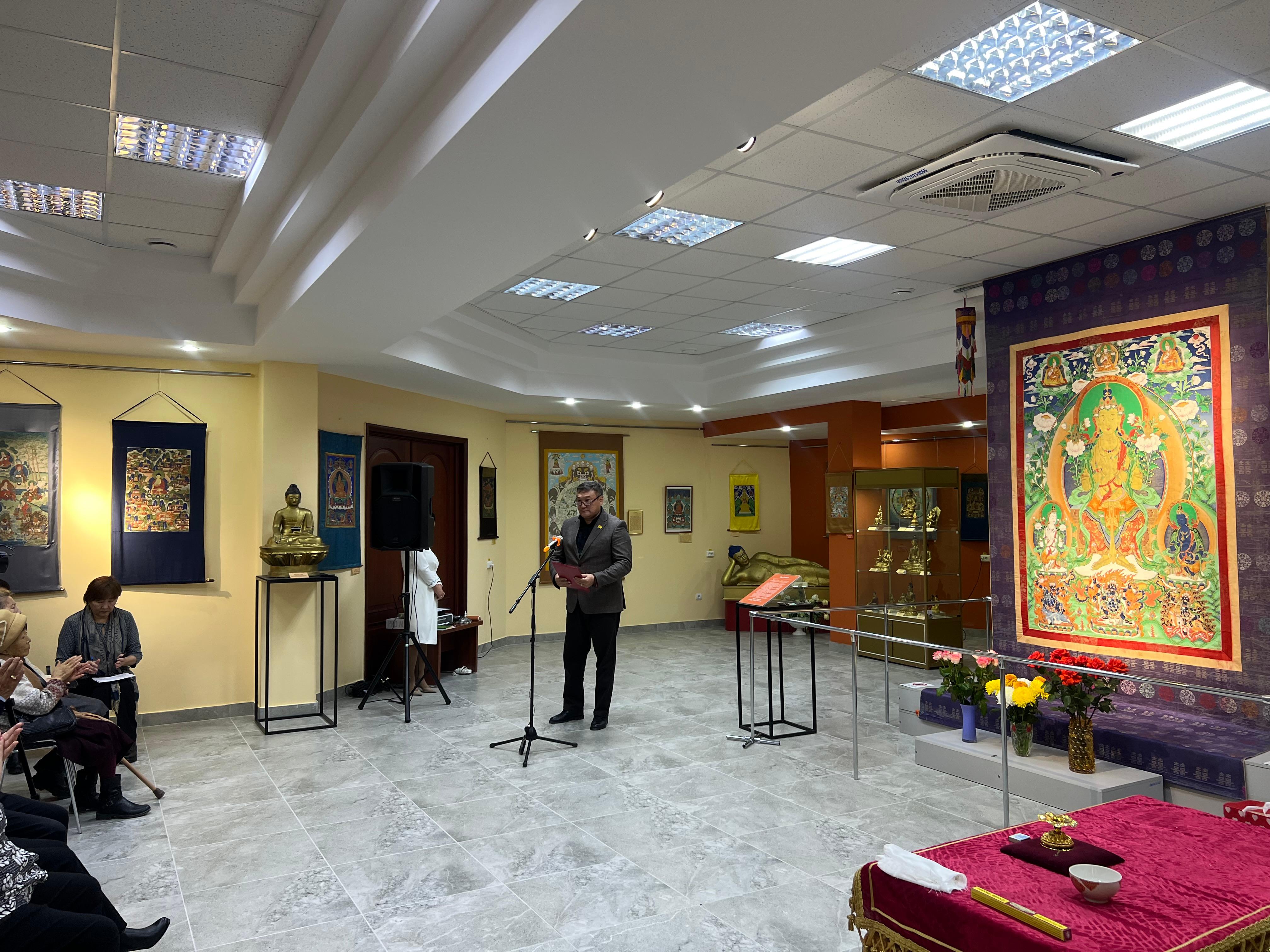 Накануне в Национальном музее состоялось открытие уникальной выставки «Свет Майтрейи», на котором широкому кругу посетителей была представлена возрожденная танка. Монахи нашего Центрального хурула провели ритуал освящения буддийской святыни.