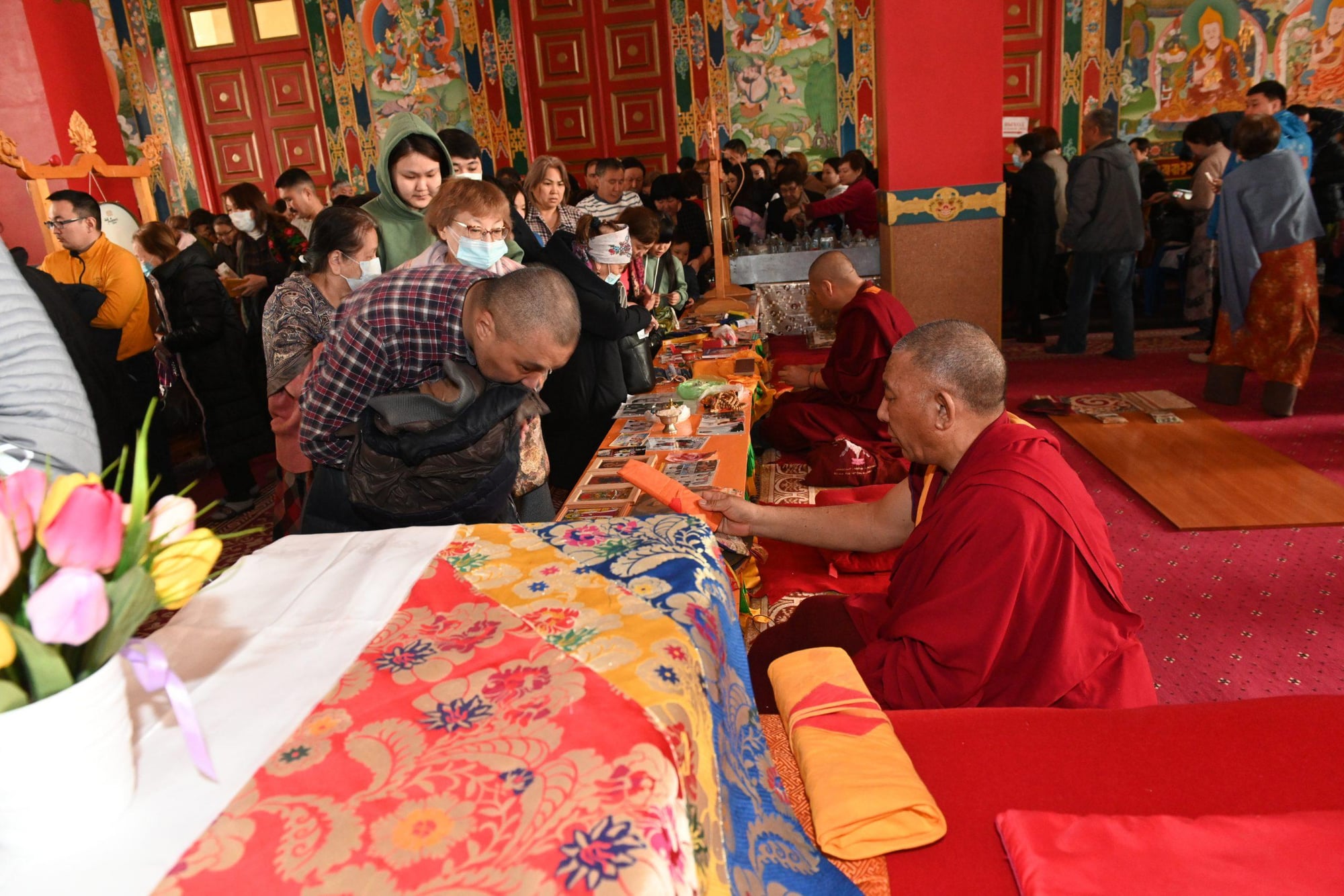 Сегодня с утра в Центральном хуруле прошёл ритуал «Кангсо». Его проводят в 29-й лунный день месяца. Все присутствующие совместно с монахами просили защитные божества - Махакалу, Окон Тенгри, Ямантаку - помочь людям избавиться от страданий, болезней, препятствий и даровать счастье и благополучие.